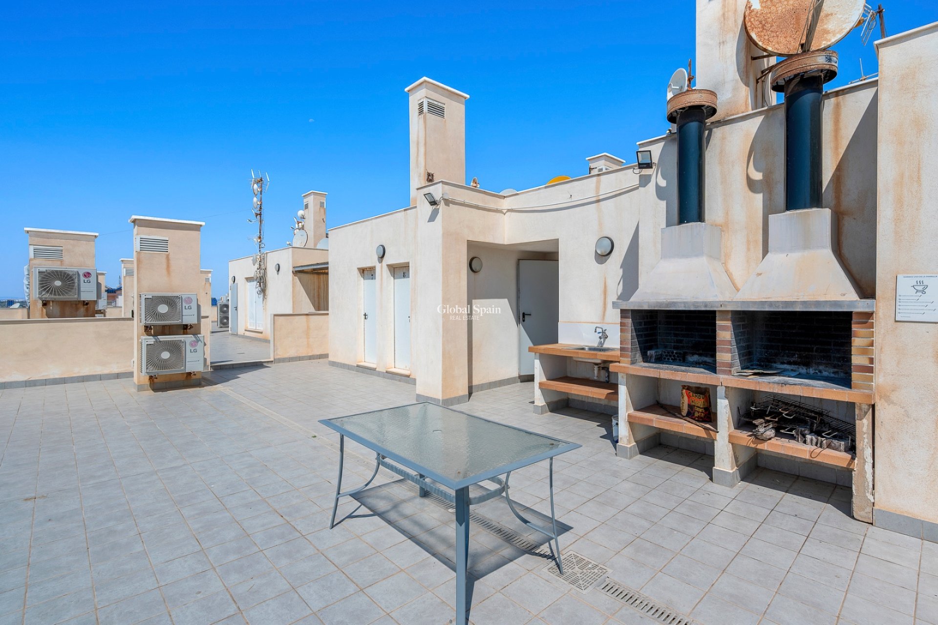 Die Wohnanlage verfügt über zwei Gemeinschaftspools, und die Immobilie beinhaltet eine private Garage.
