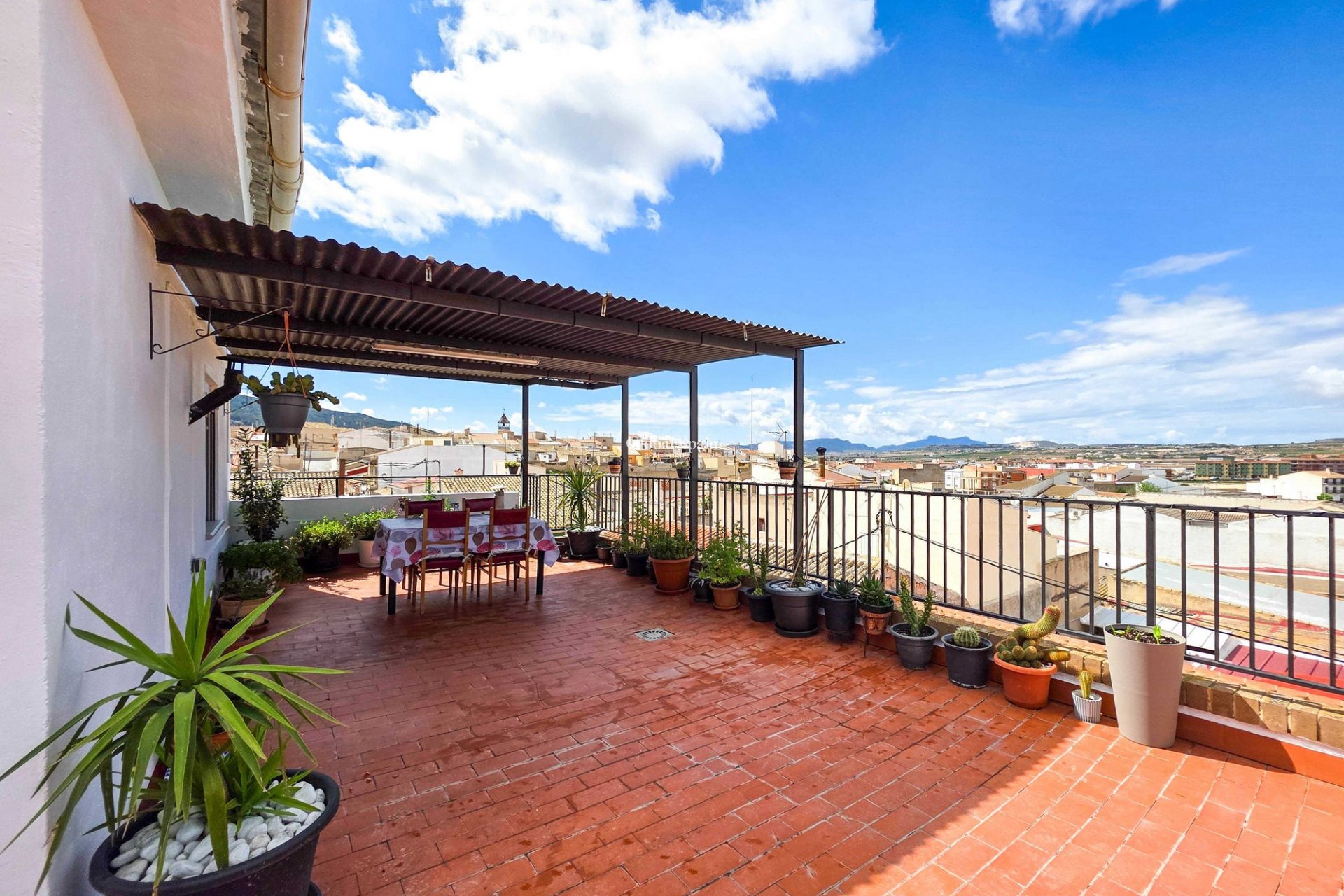 Bezugsfertiges Dorfhaus mit drei Etagen, Garage und geräumiger Dachterrasse Dieses geräumige Eckhaus erstreckt sich über drei Etagen und bietet einen fantastischen 360-Grad-Blick auf das charmante Dorf Pinoso und die umliegenden Berge. Das Anwesen liegt zentral und ruhig in einer freundlichen Nachbarschaft und ist bereit für den Einzug neuer Bewohner. Das Haus – Erdgeschoss Ein Flur mit einer zusätzlichen Glaseingangstür führt zum hellen Wohnzimmer. Auf dieser Etage befinden sich auch ein Badezimmer und die Küche mit Speisekammer. Das Induktionskochfeld und der Backofen wurden kürzlich installiert. Das Haus – Erste Etage Diese Etage verfügt über drei großzügige Schlafzimmer, eines davon mit Einbauschränken und das andere über einen angrenzenden Balkon. Außerdem gibt es ein geräumiges Badezimmer und eine weitere Speisekammer. Das Haus – Zweite Etage Die oberste Etage beeindruckt mit einer großen Dachterrasse. Hier können Sie den ganzen Tag die Sonne genießen, es wurde jedoch auch ein schattiger Bereich geschaffen. Die Aussicht ist absolut atemberaubend. Sie möchten lieber etwas drinnen sitzen? Es gibt einen großen Raum mit Sitzecke und eine kürzlich eingebaute Küche – perfekt für die Zubereitung von Snacks und Getränken für die Terrasse. Bonus: Eine private angrenzende Garage (im Preis inbegriffen). Ausstattung Dieses geräumige Dorfhaus bietet eine großartige Gelegenheit, in der beliebten Stadt Pinoso zu leben, mit allen Annehmlichkeiten in Gehweite. Das Haus ist an Strom, Abwasser und Wasser angeschlossen und die Verkabelung wurde kürzlich erneuert. Für kältere Tage wurden außerdem Infrarot-Heizpaneele und ein Pelletofen installiert. Die Fenster sind mit Fliegengittern ausgestattet. Pinoso Pinoso bietet alle Annehmlichkeiten des täglichen Bedarfs, darunter Supermärkte, Schulen, ein medizinisches Zentrum und Sportanlagen sowie eine große Auswahl an Restaurants. Die Gegend ist bekannt für ihre vielen Spazier-, Wander- und Radwege. Sowohl die Flughäfen Alicante und Murcia als auch die Strände sind innerhalb einer Autostunde zu erreichen. Lassen Sie sich diese Gelegenheit nicht entgehen – vereinbaren Sie noch heute einen Besichtigungstermin!