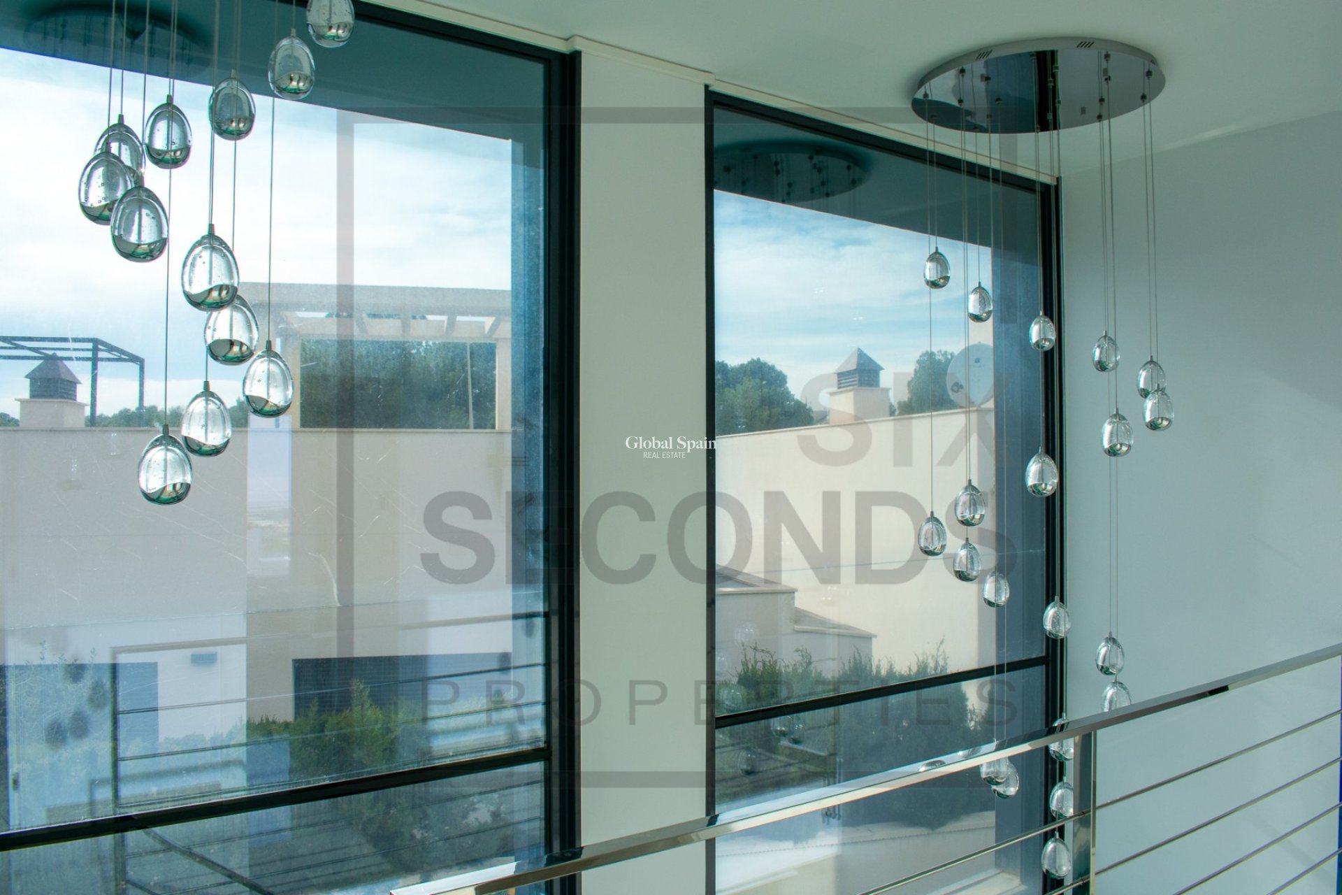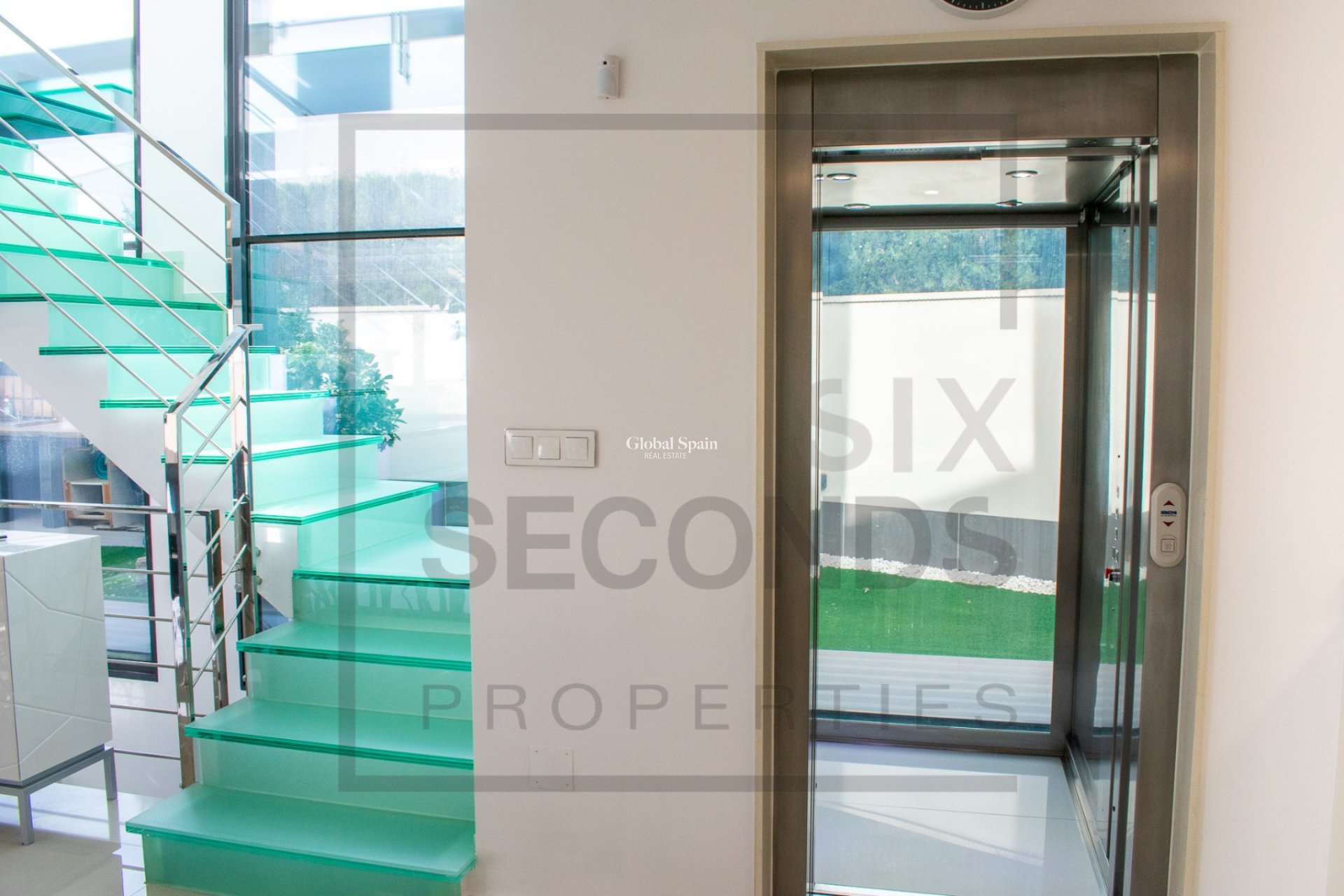 Mit einer tadellosen Aufteilung auf zwei Etagen und einem Keller präsentiert sich diese Residenz mit 5 Schlafzimmern und 4 Bädern als ein Zufluchtsort voller Komfort und Eleganz . Von dem Moment an, in dem Sie eintreten, bringt Sie ein privater Aufzug mühelos zu jeder Ebene, während eine beeindruckende beleuchtete Glastreppe Sie dazu einlädt , die Schönheit moderner Architektur zu bestaunen.