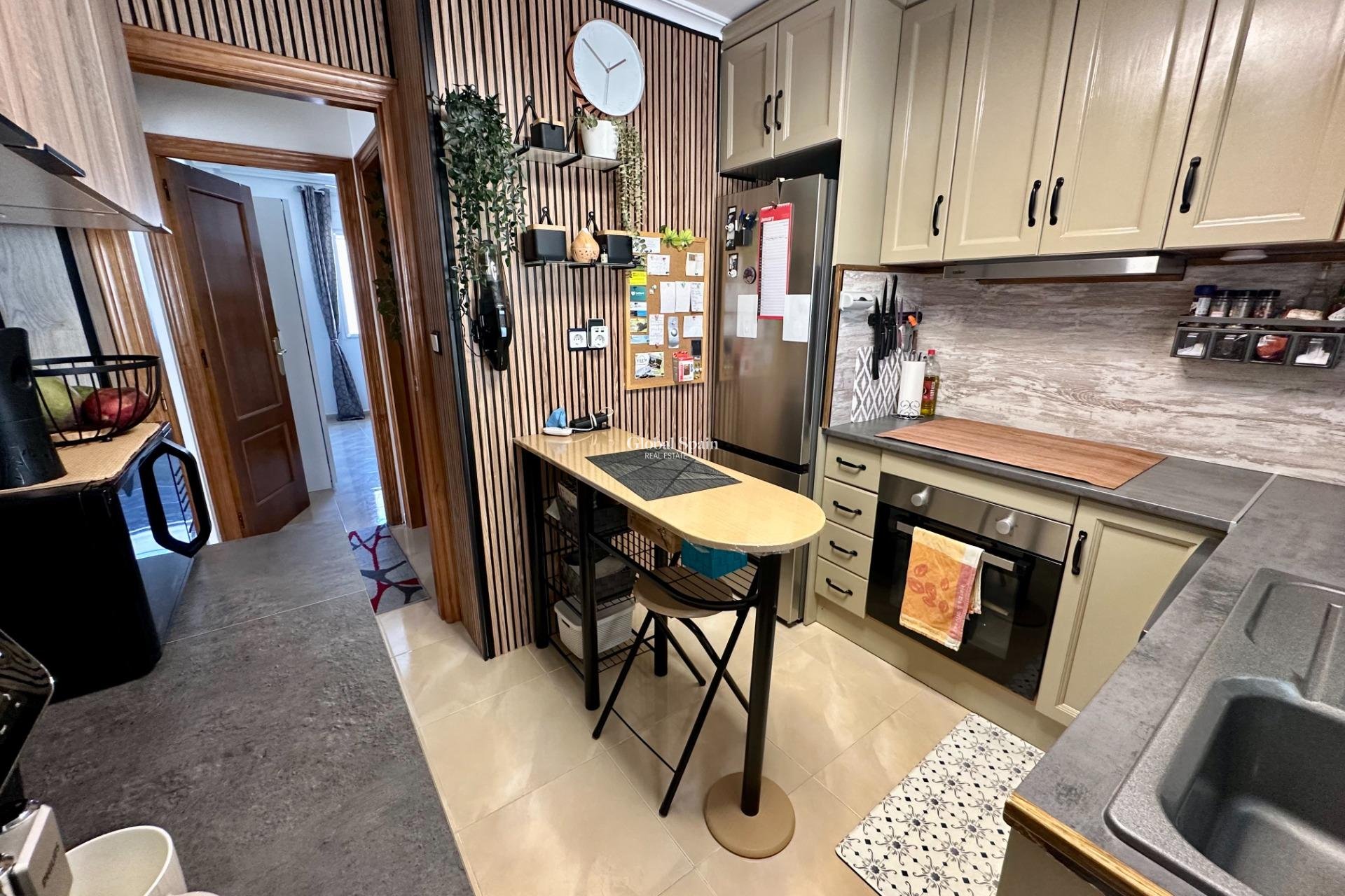Reihenhaus mit Keller und Solarium in San Miguel de Salinas. Dieses gepflegte Reihenhaus mit vier Schlafzimmern befindet sich in einer geschlossenen Wohnanlage mit Gemeinschaftspool in San Miguel de Salinas. Im Erdgeschoss befinden sich ein helles Wohnzimmer mit Zugang zu einer sonnigen Terrasse, eine separate Küche, ein Schlafzimmer und ein Badezimmer. Im Obergeschoss erwarten Sie zwei weitere Schlafzimmer, eines davon mit eigener Terrasse, sowie ein Familienbad. Das private Solarium bietet einen weiten Ausblick und ganztägigen Sonnenschein. Der geräumige Keller wurde zu einem zusätzlichen Wohnbereich mit Lounge, Schlafzimmer und einem großen Abstellraum ausgebaut. Dieses Haus eignet sich perfekt zum dauerhaften Wohnen oder für Ferienaufenthalte und vereint Platz, Komfort und eine hervorragende Lage – nur eine kurze Autofahrt von den Stränden der Orihuela Costa, Golfplätzen und allen Annehmlichkeiten des täglichen Bedarfs entfernt.