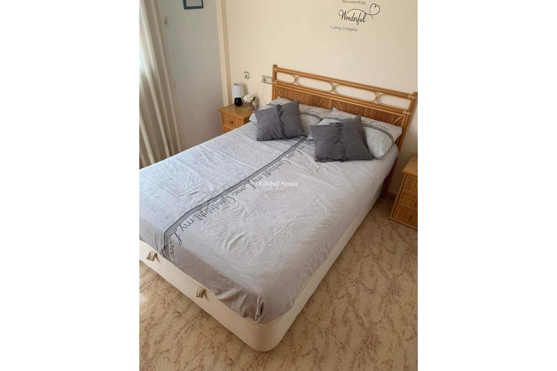 Sehr schönes Haus in einer ruhigen Wohngegend von Las Filipinas, Orihuela Costa. Diese Immobilie erstreckt sich über zwei Etagen und bietet eine komfortable sowie praktische Raumaufteilung. Im Erdgeschoss befinden sich eine komplett ausgestattete Küche, die in ein gemütliches Wohnzimmer übergeht, ein Schlafzimmer sowie ein Badezimmer. In der oberen Etage liegen zwei weitere Schlafzimmer – eines davon mit eigenem Balkon – sowie ein zweites Badezimmer. Von dieser Etage aus gelangt man auf eine Terrasse, die Zugang zum großzügigen Solarium mit zusätzlichem Abstellraum bietet.Der Außenbereich ist besonders einladend und verfügt über mehrere Terrassen, darunter eine überdachte, einen Whirlpool zur Entspannung, einen privaten Parkplatz, weiteren Stauraum sowie einen gepflegten Garten. Das Haus ist mit Klimaanlagen im Wohnzimmer und in allen Schlafzimmern ausgestattet, wobei jedes Schlafzimmer über Einbauschränke verfügt. Die Immobilie wird vollständig möbliert verkauft, befindet sich in sehr gutem Zustand und verfügt über eine touristische Vermietungslizenz – ideal für den Eigenbedarf oder als Investitionsobjekt.Die Wohnanlage bietet zudem einen schönen Gemeinschaftspool und eine gepflegte Gartenanlage – perfekt, um das milde Klima der Costa Blanca zu genießen. Die Lage ist ausgezeichnet: fußläufig zu allen Annehmlichkeiten, in der Nähe mehrerer Golfplätze, nur 6 Kilometer von den herrlichen Stränden der Costa Blanca entfernt und etwa 55 Kilometer vom Flughafen Alicante. Einkaufsmöglichkeiten und Restaurants sind rund 1 Kilometer entfernt, und der nächste Golfplatz liegt nur 2 Kilometer entfernt.Mit einer bebauten Fläche von 90 m², einer nutzbaren Wohnfläche von 80 m² und einem Grundstück von 144 m² vereint dieses Haus Raum, Komfort und eine hervorragende Lage. Es verfügt außerdem über einen Balkon, eine Veranda, ein Solarium, eine Dachterrasse, doppelt verglaste Fenster und sämtliche Ausstattungsmerkmale, die man für ein dauerhaftes Wohnen oder einen entspannten Urlaub benötigt.