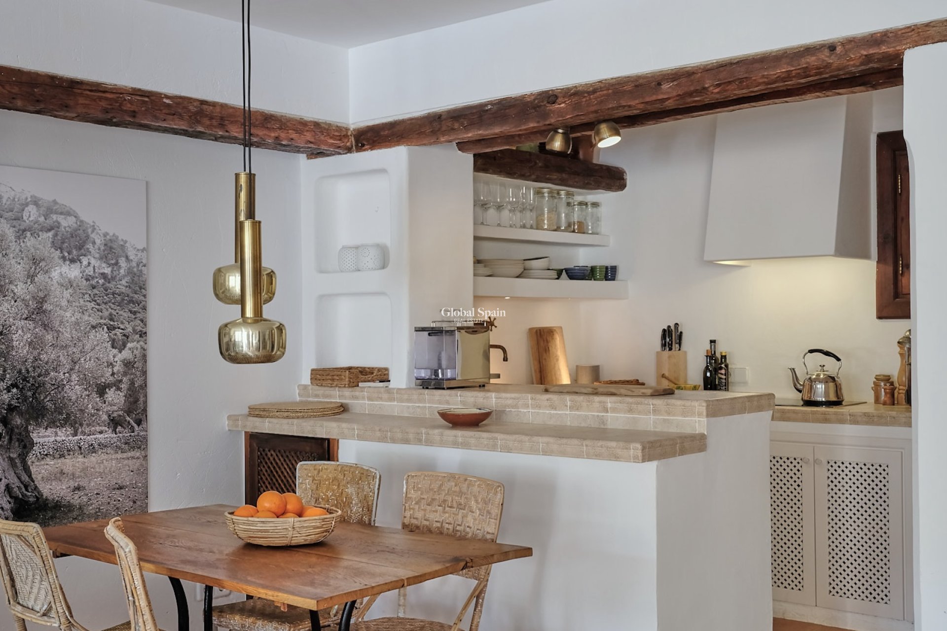 Erstklassige Ferienwohnung mit spektakulärem Meerblick in Cala Llamp – Puerto de Andratx. Diese außergewöhnliche Wohnung befindet sich in erster Strandreihe im begehrten Cala Llamp und bietet einen atemberaubenden Blick über die wunderschöne türkisfarbene Bucht. Von der großzügigen, sonnigen Terrasse aus erleben Sie das Mittelmeer hautnah – ein einzigartiger Außenbereich, in dem Sonne, Meer und Ruhe harmonisch ineinander übergehen, während sich der Blick vom sanften Morgenlicht bis zum goldenen Sonnenuntergang wandelt. Die Wohnung bietet ca. 66 m² Wohnfläche sowie eine großzügige Terrasse von ca. 20 m², die teilweise überdacht ist. Die durchdachte Raumaufteilung umfasst zwei Schlafzimmer und zwei Badezimmer, von denen eines kleiner und ideal als Gästebad geeignet ist. Die offene Gestaltung der Wohnbereiche und der Terrasse sorgt für eine optimale Raumnutzung. Die Immobilie wurde unter Berücksichtigung des originalen mallorquinischen Stils kontinuierlich modernisiert und bietet so eine warme und authentische Atmosphäre. Klassische Terrakottaböden, natürliche Materialien und raffinierte Details unterstreichen den Charakter des Hauses und schaffen ein zeitloses und einladendes Wohnambiente. Küche und Wohnbereich sind offen und einladend gestaltet. Durch die Vergrößerung der Wohnfläche im Wohnzimmer entsteht ein großzügigeres Raumgefühl und eine modernere Raumaufteilung. Der direkte Zugang zur Terrasse verstärkt das Gefühl von Licht, Offenheit und Verbundenheit mit der Umgebung. Die Wohnung ist Teil einer gepflegten und gut funktionierenden Wohnanlage mit Gemeinschaftspool und bietet ein sicheres und attraktives Ambiente. Die Lage zählt zu den begehrtesten auf Mallorca. Cala Llamp ist bekannt für seine dramatische Küste und das kristallklare Wasser. Der Beach Club Gran Folies sowie der exklusive Hafen von Puerto de Andratx mit seinen Restaurants, Cafés und Boutiquen sind nur eine kurze Autofahrt entfernt. Eine seltene Gelegenheit, eine Immobilie in erster Strandreihe in einer der exklusivsten und begehrtesten Gegenden Mallorcas zu erwerben.