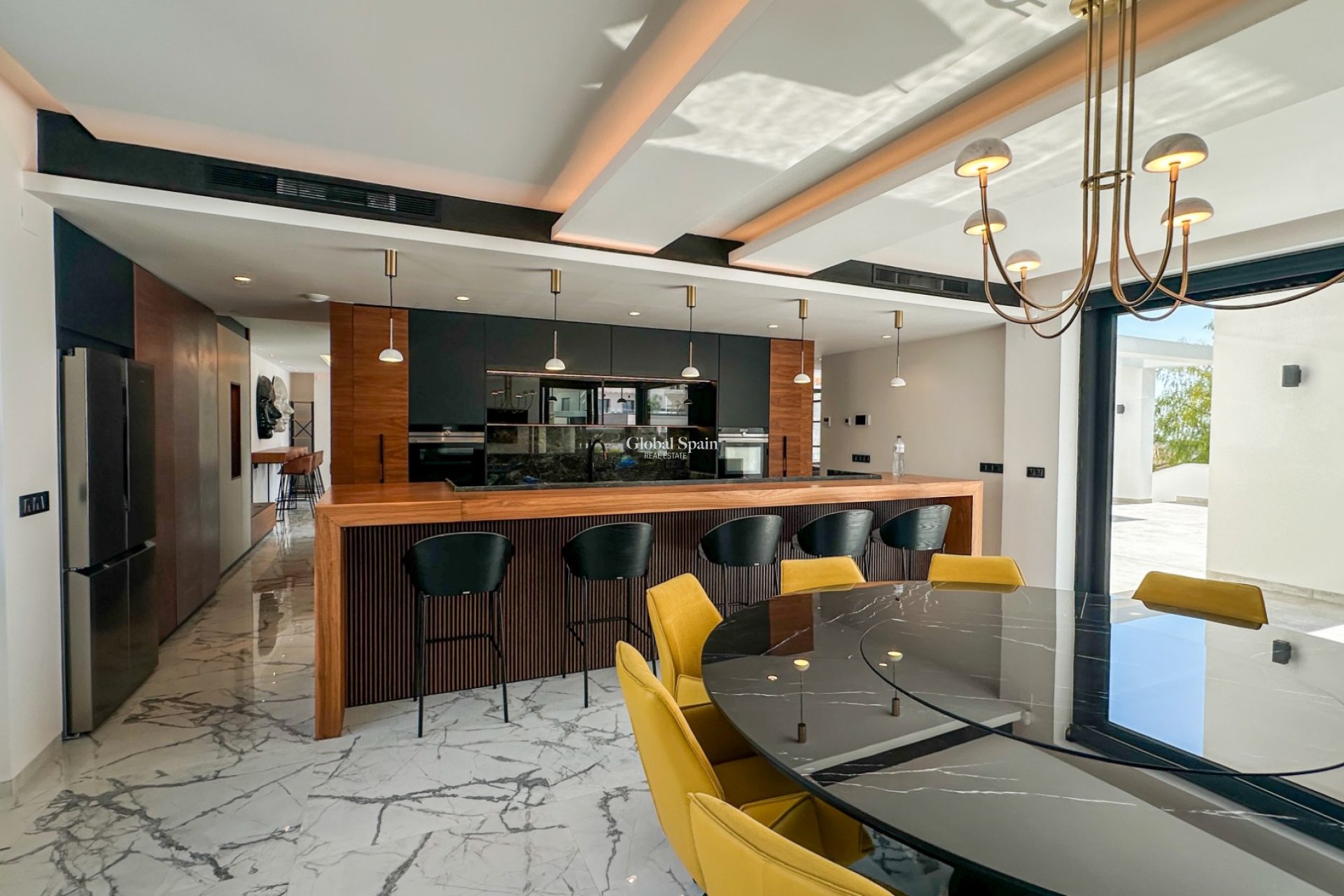 Ultra-Luxus-Villa mit Golf- und Meerblick in Villamartín – Der Inbegriff mediterranen Wohnens. Erleben Sie ultimativen Luxus in dieser außergewöhnlichen Villa im Herzen der Orihuela Costa. Nur eine Minute vom exklusiven Golfclub Villamartín entfernt, bietet diese Residenz direkten Zugang zu Gourmetrestaurants, eleganten Bars, erstklassigen Serviceleistungen und exklusiven Boutiquen. Die goldenen Sandstrände der Costa Blanca und der berühmte La Zenia Boulevard sind nur fünf Minuten entfernt, und internationale Reisende profitieren von der hervorragenden Anbindung an den Flughafen Alicante-Elche Miguel Hernández und den internationalen Flughafen der Region Murcia. Auf einem 1.008 m² großen, nach Südwesten ausgerichteten Grundstück gelegen, umfasst dieses Meisterwerk 527 m² exquisit gestaltete Wohnfläche mit drei palastartigen Schlafzimmern mit jeweils eigenem Bad, darunter ein 38 m² großes Hauptschlafzimmer mit begehbarem Kleiderschrank und privater Terrasse mit atemberaubendem Meerblick. Zwei Gästetoiletten und ein 163 m² großer, offener Wohn- und Küchenbereich mit hochwertiger Designer-Holzarbeit und erstklassigen Geräten vereinen Eleganz mit müheloser Funktionalität. Diese Villa ist ein Triumph moderner Ingenieurskunst und nachhaltigen Luxus: Fußbodenheizung im gesamten Haus, ein beheizter Infinity-Pool, Solaranlage, zonenweise regulierbare Klimaanlage und ein privater Aufzug, der alle Etagen verbindet, garantieren höchsten Komfort. Weitläufige Terrassen, eine Außenküche und gepflegte Gärten bieten die perfekte Kulisse für rauschende Feste oder entspannte Stunden unter der mediterranen Sonne. Im Untergeschoss der Villa befindet sich ein komplett separates Ein-Zimmer-Apartment mit Bad en suite, Wohnbereich und Küche – ideal für VIP-Gäste oder zur Vermietung. Eine Doppelgarage mit großzügigem Stauraum rundet dieses unvergleichliche Anwesen ab. Jedes Detail dieser Immobilie wurde sorgfältig für anspruchsvolle Genießer ausgewählt: Von prestigeträchtiger Lage direkt am Golfplatz bis hin zu eleganter Küstenlage bietet diese Villa die einmalige Gelegenheit, ein repräsentatives Haus zu besitzen, das mediterranen Luxus in seiner höchsten Form verkörpert.