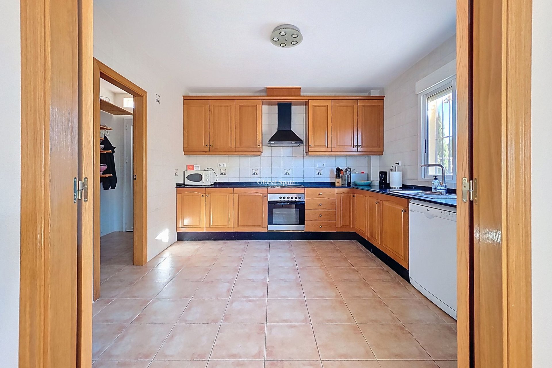 La vivienda principal cuenta con un amplio salón, tres dormitorios y dos baños. El dormitorio principal tiene baño en suite y vistas al entorno natural. Todas las estancias están en una sola planta, lo que hace que la vivienda sea apta para personas con movilidad reducida. Dispone además de un sistema de alarma con cámaras.