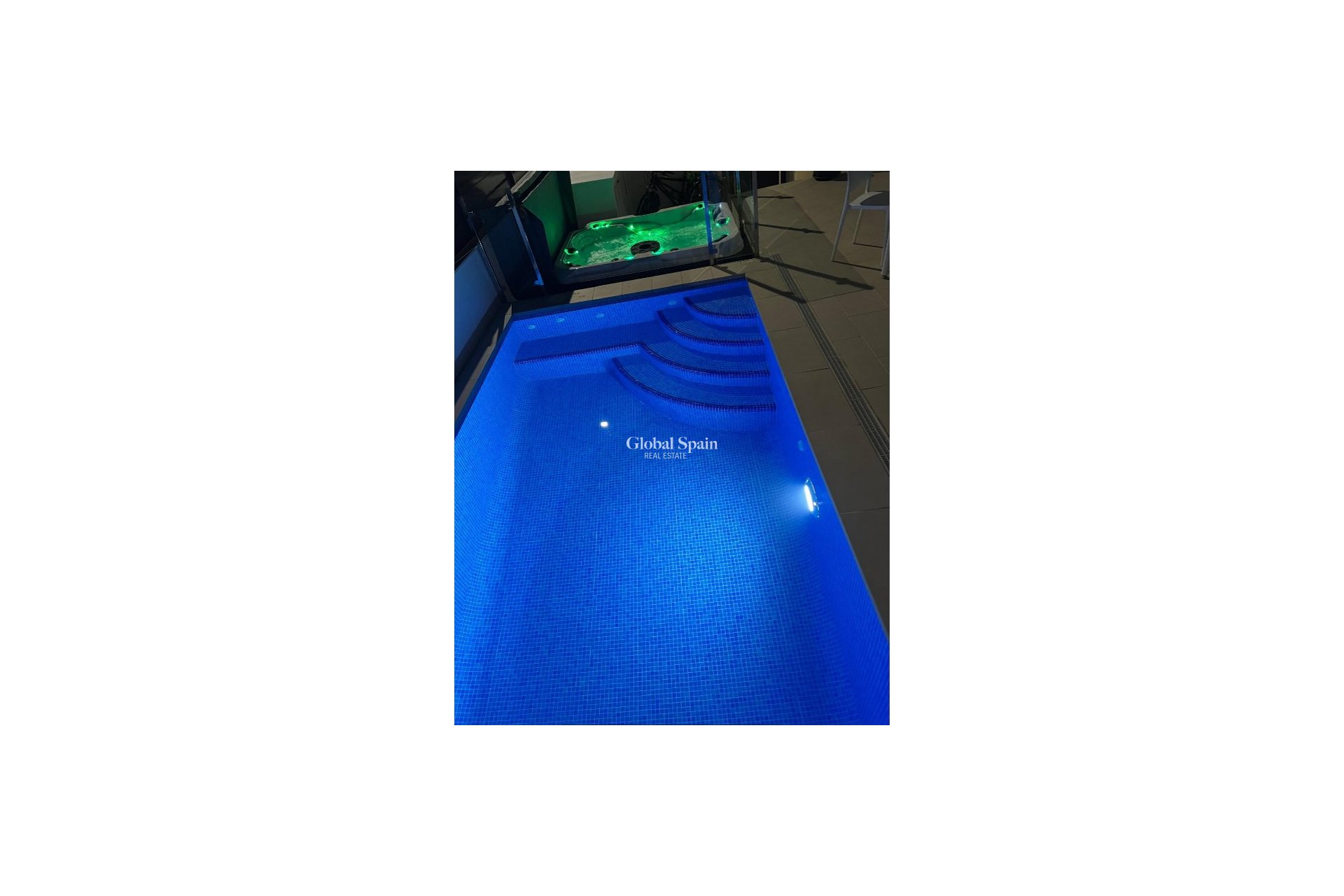 En el exterior, encontrará una piscina privada con cascada y un jacuzzi privado — el lugar perfecto para relajarse y disfrutar del estilo de vida mediterráneo. El solárium en la azotea ofrece un gran potencial, ya que está preparado para añadir un tercer baño privado, con instalaciones de desagüe y electricidad ya previstas. Con toldos integrados, pantallas de privacidad y una zona de estar cubierta, la terraza es ideal para entretener a los invitados o disfrutar de las impresionantes vistas.