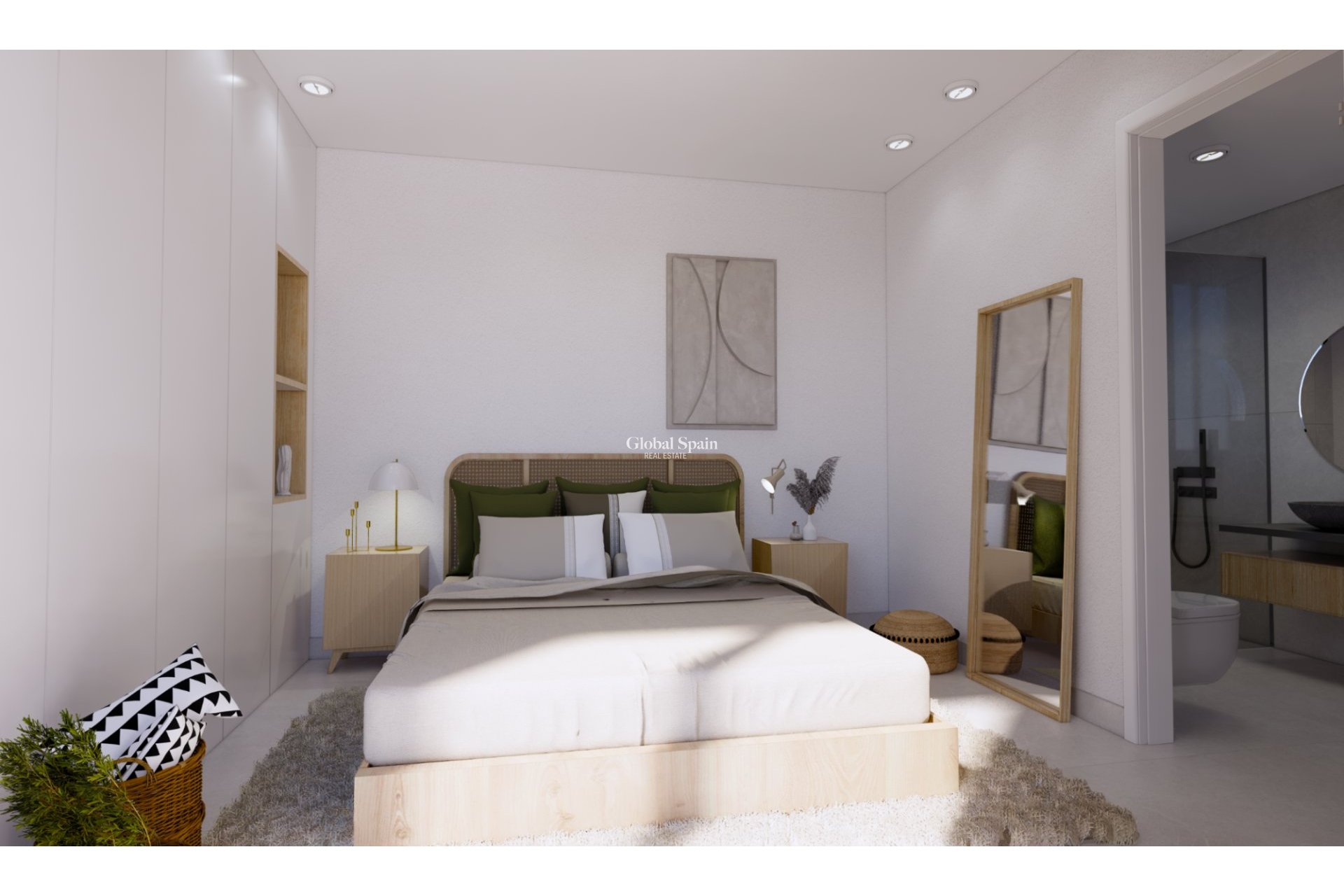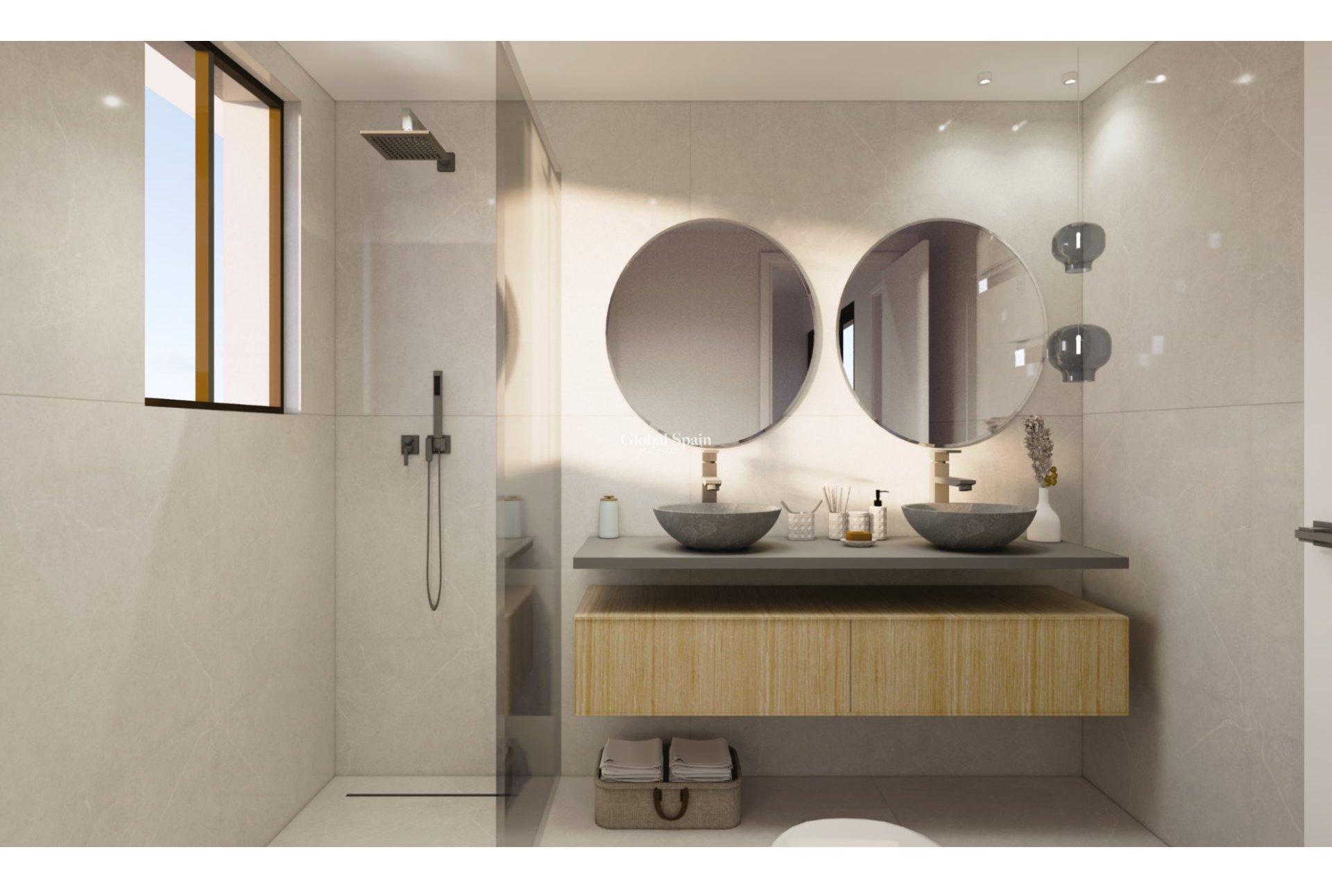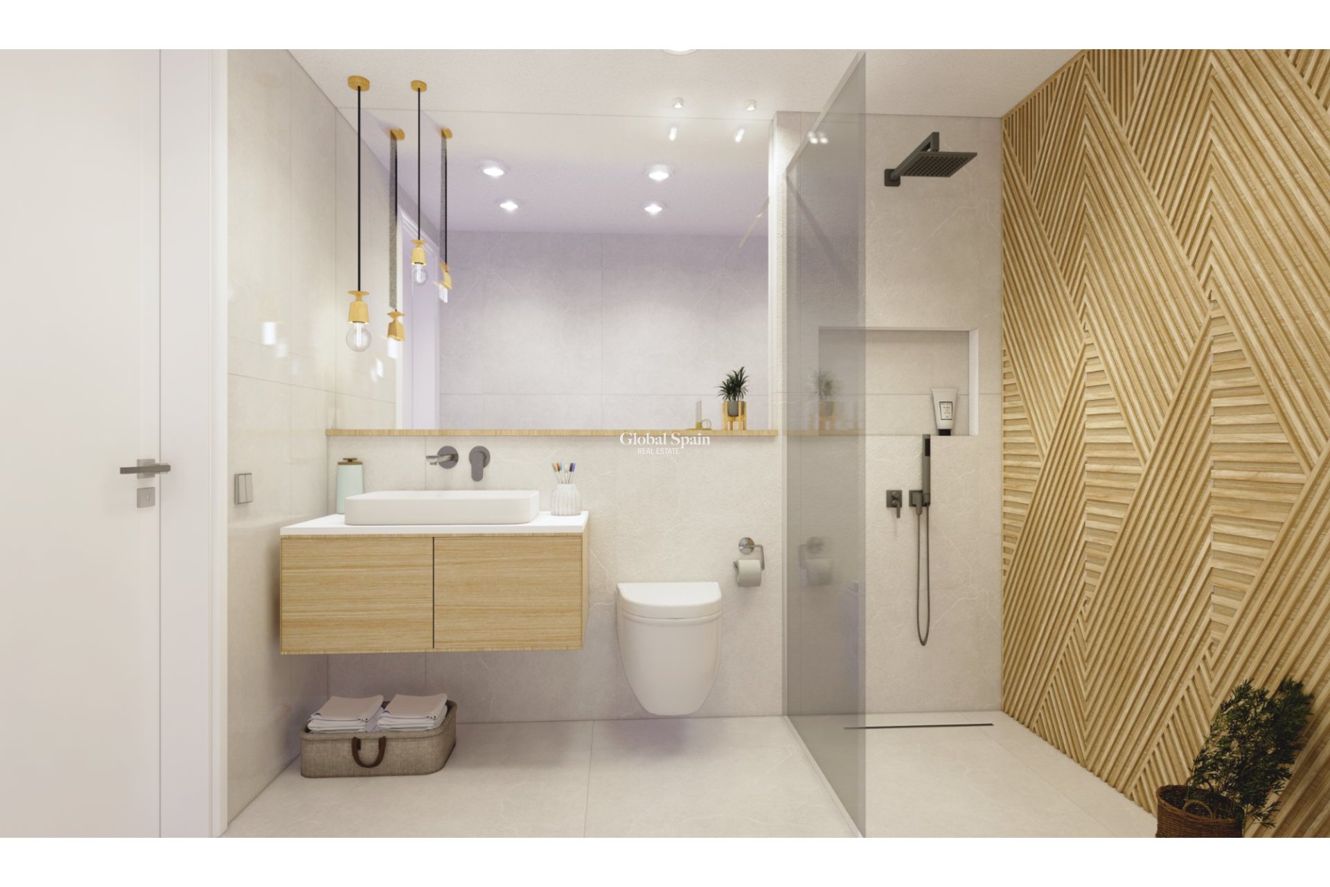 - Baños con mueble, espejo y mampara