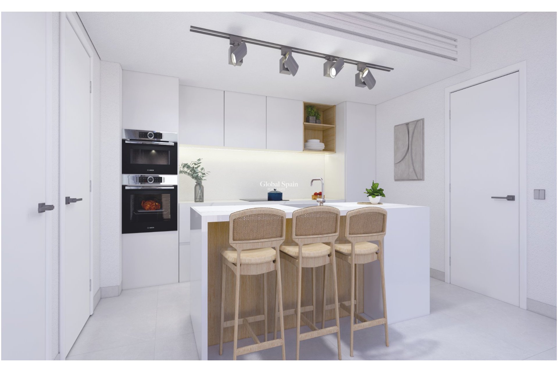 - Cocina completa con electrodomésticos (horno, vitrocerámica, campana extractora, frigorífico-congelador, lavavajillas, microondas)