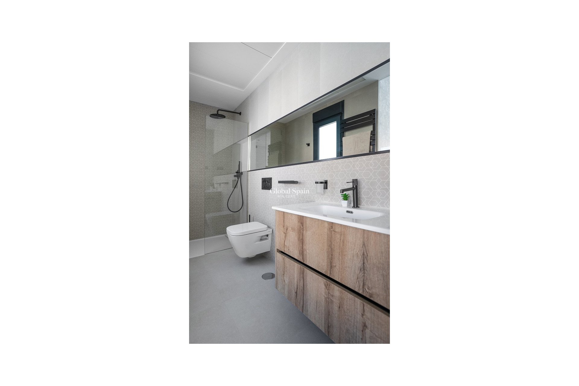 Muebles de baño con espejo y luz, mamparas de ducha en todos los baños