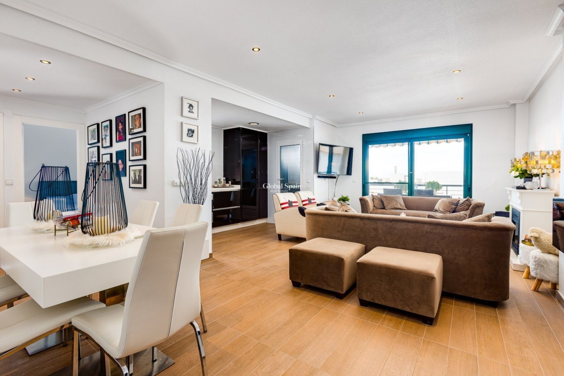 El salón conecta con una terraza orientada al este, perfecta para disfrutar del sol de mañana y de un ambiente agradable durante todo el día. La vivienda mantiene un estado impecable, reflejando un cuidado continuo por parte de sus propietarios.