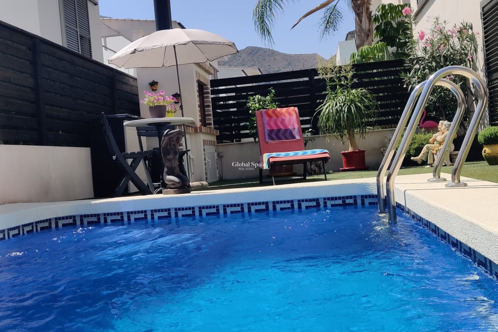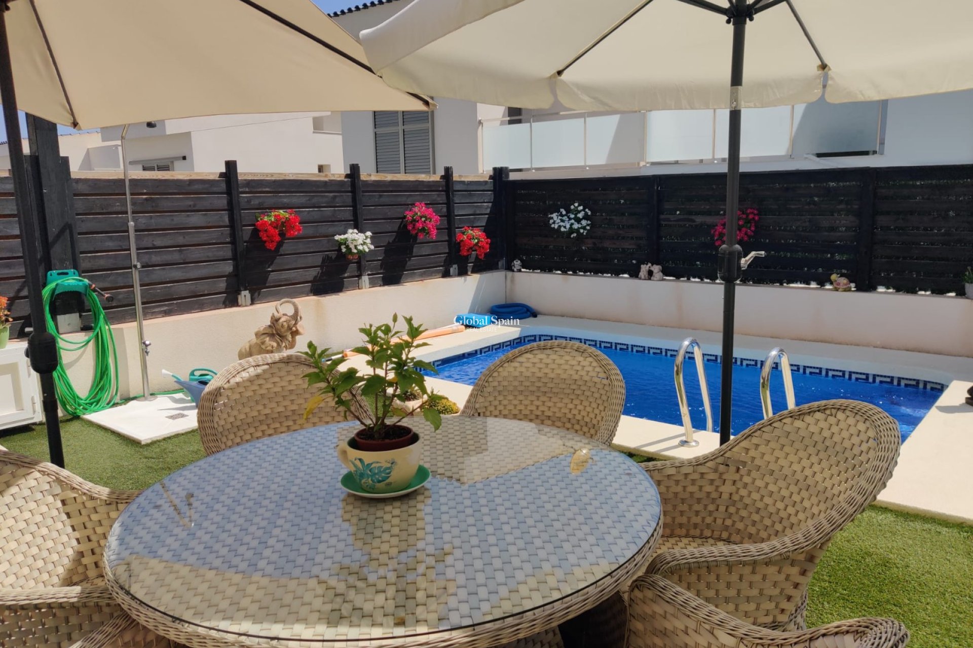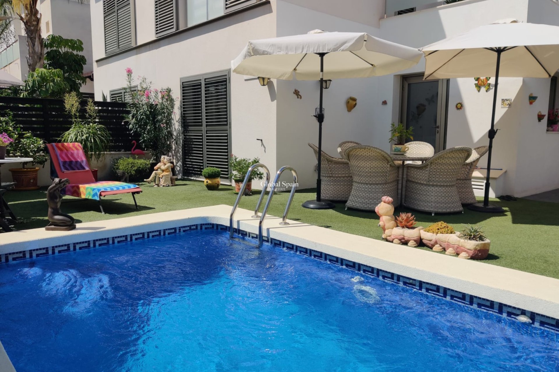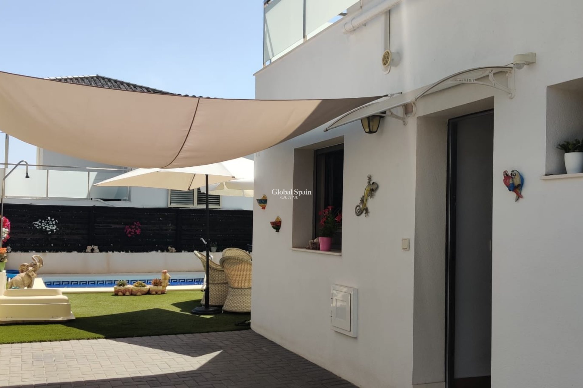 Extérieur : La villa a une élégante architecture de style espagnol, avec des murs traditionnels blanchis à la chaux. Le jardin bien entretenu entoure la propriété, orné d'une végétation luxuriante et de fleurs colorées. La piscine privée accueillante invite les jours chauds et offre une oasis rafraîchissante pour la détente et les loisirs.