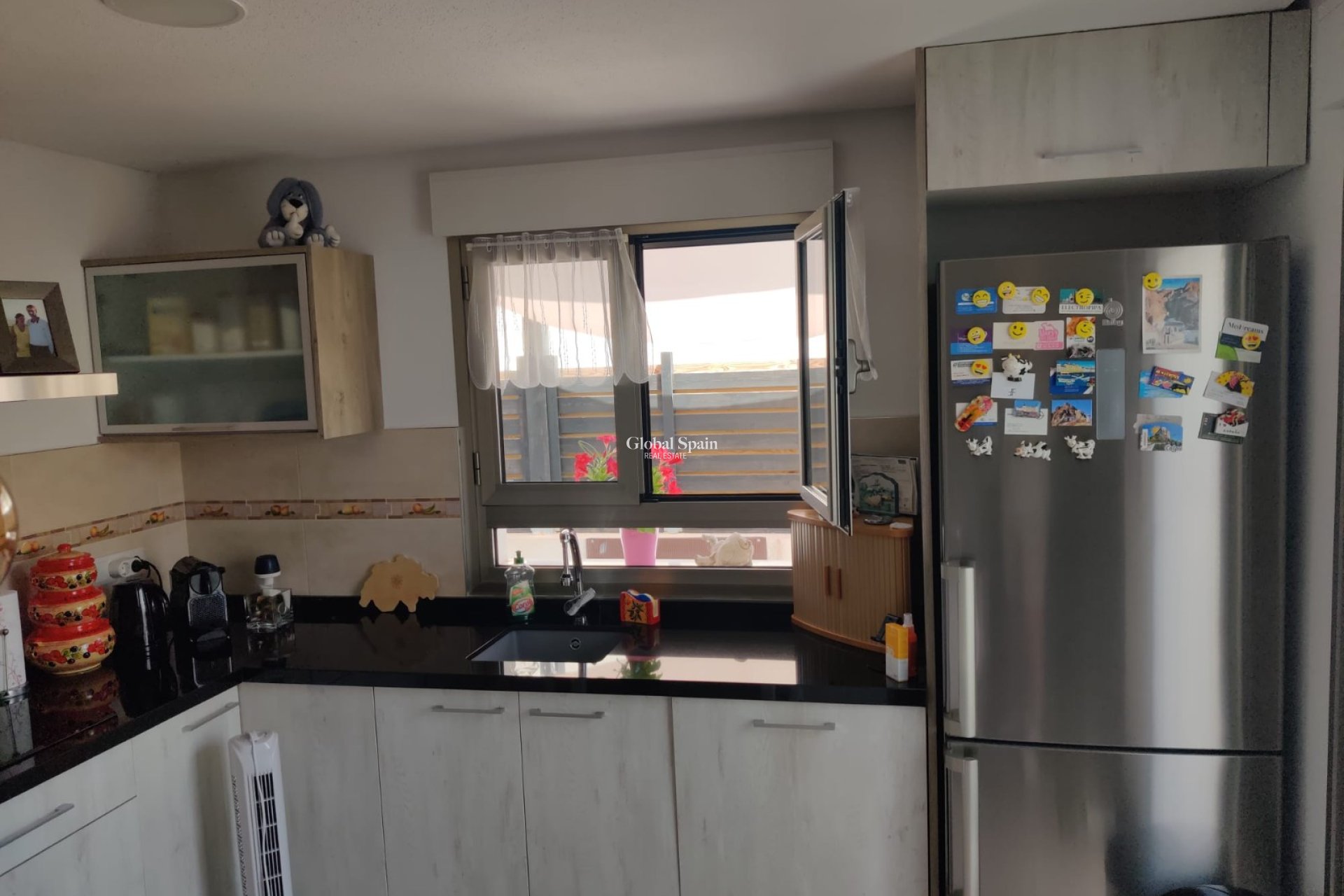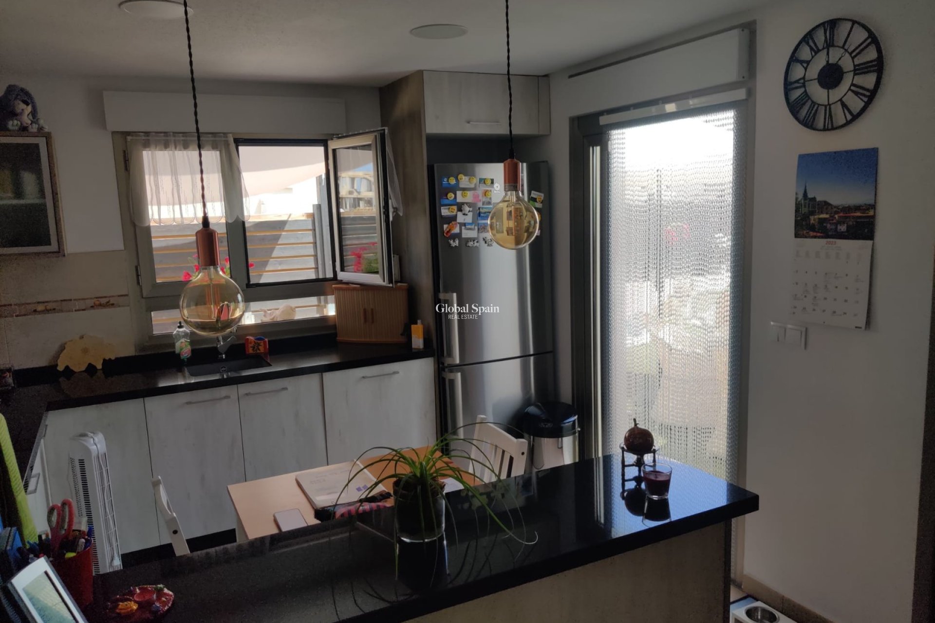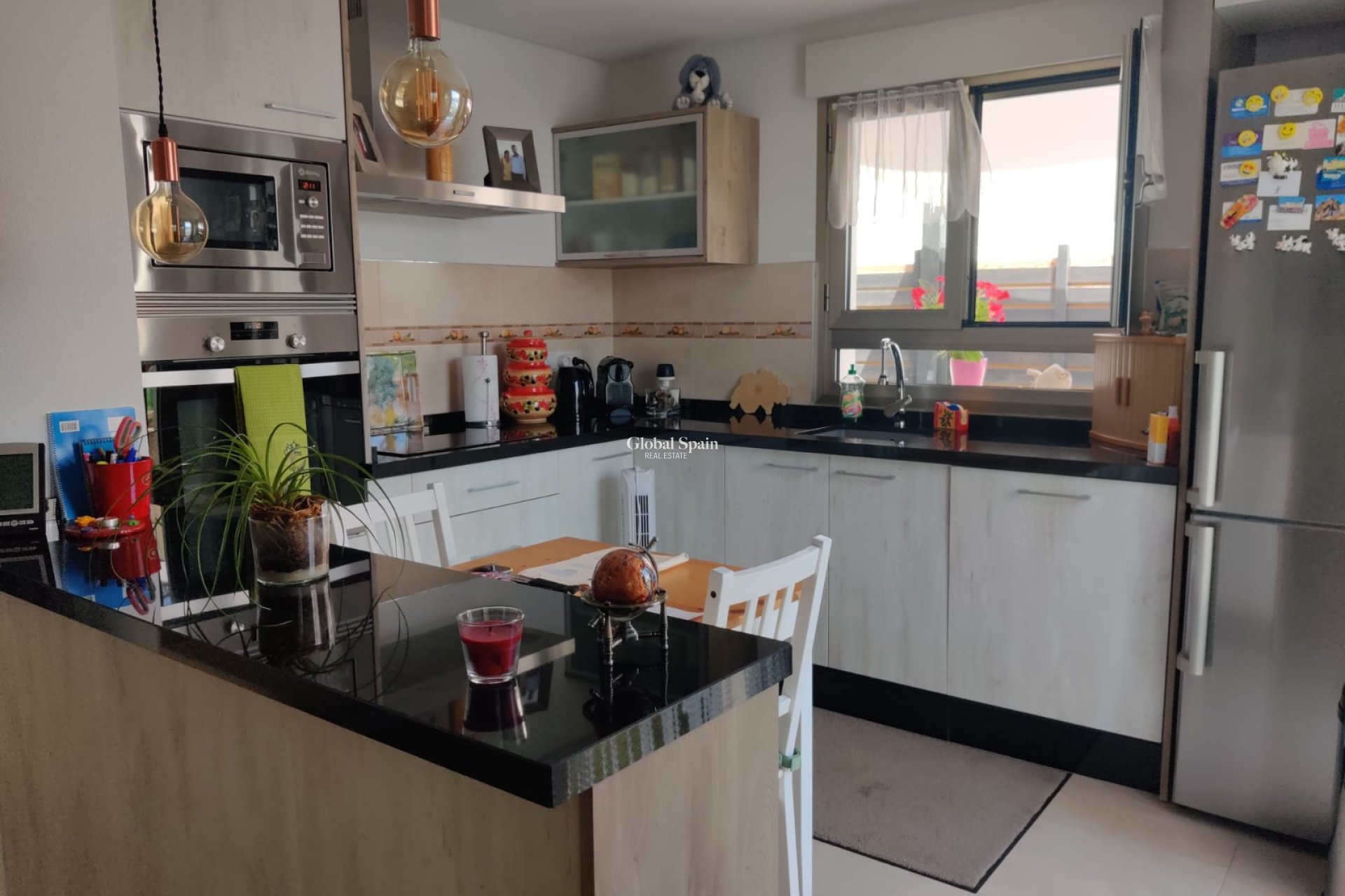 La cuisine moderne est équipée d'appareils électroménagers haut de gamme, d'un grand espace de rangement et d'un élégant bar à petit-déjeuner, répondant aux besoins des chefs les plus exigeants. De la cuisine, de grandes portes vitrées mènent à une charmante terrasse couverte, où vous pourrez dîner en plein air tout en profitant des belles vues sur les environs.
