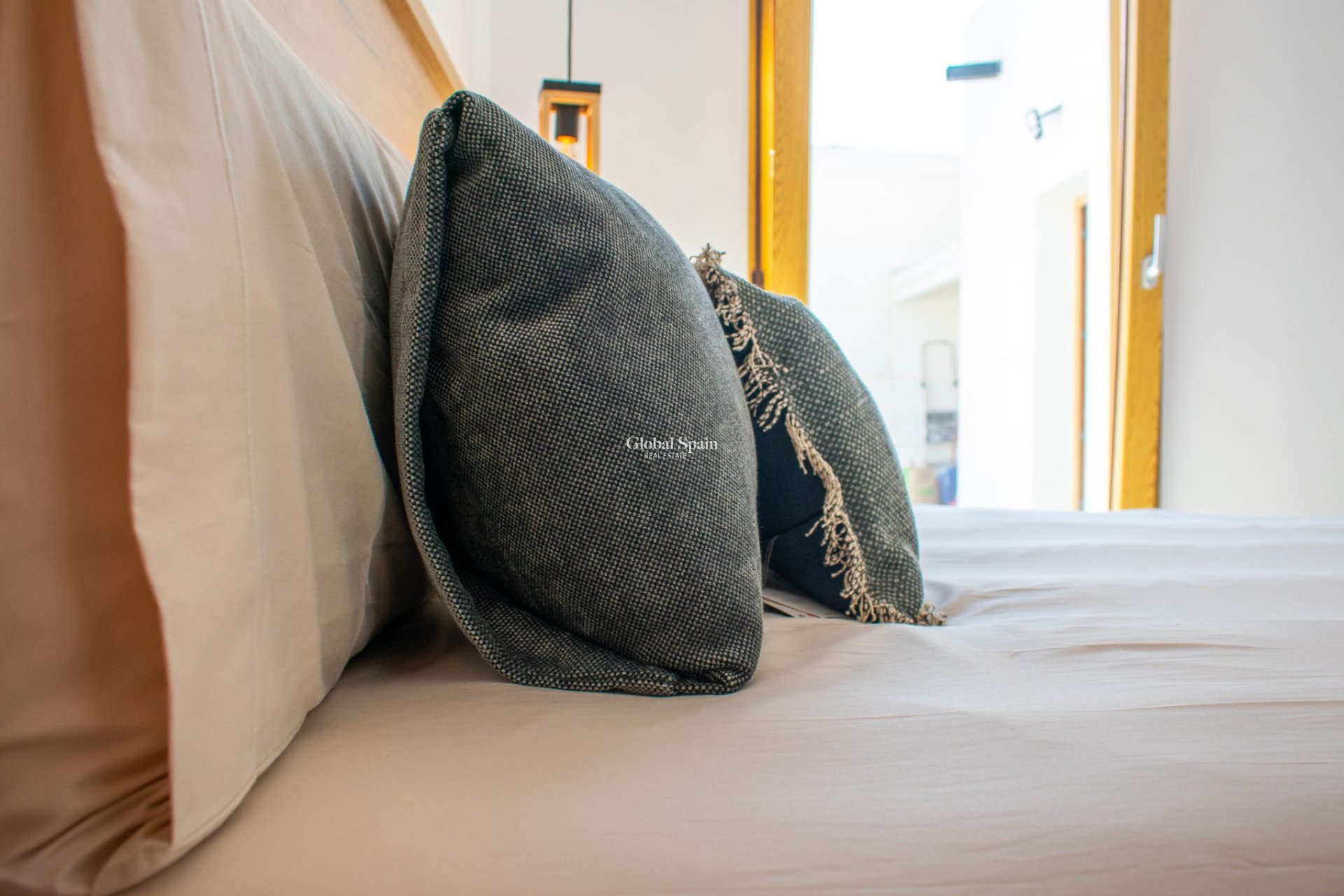 L'extérieur de la villa offre une piscine privée entourée d'une terrasse, parfaite pour se détendre au soleil. De plus, une cuisine extérieure avec coin barbecue offre le cadre idéal pour profiter des repas en plein air. Le jardin, conçu pour nécessiter peu d'entretien, est équipé d'un système d'irrigation automatique.
