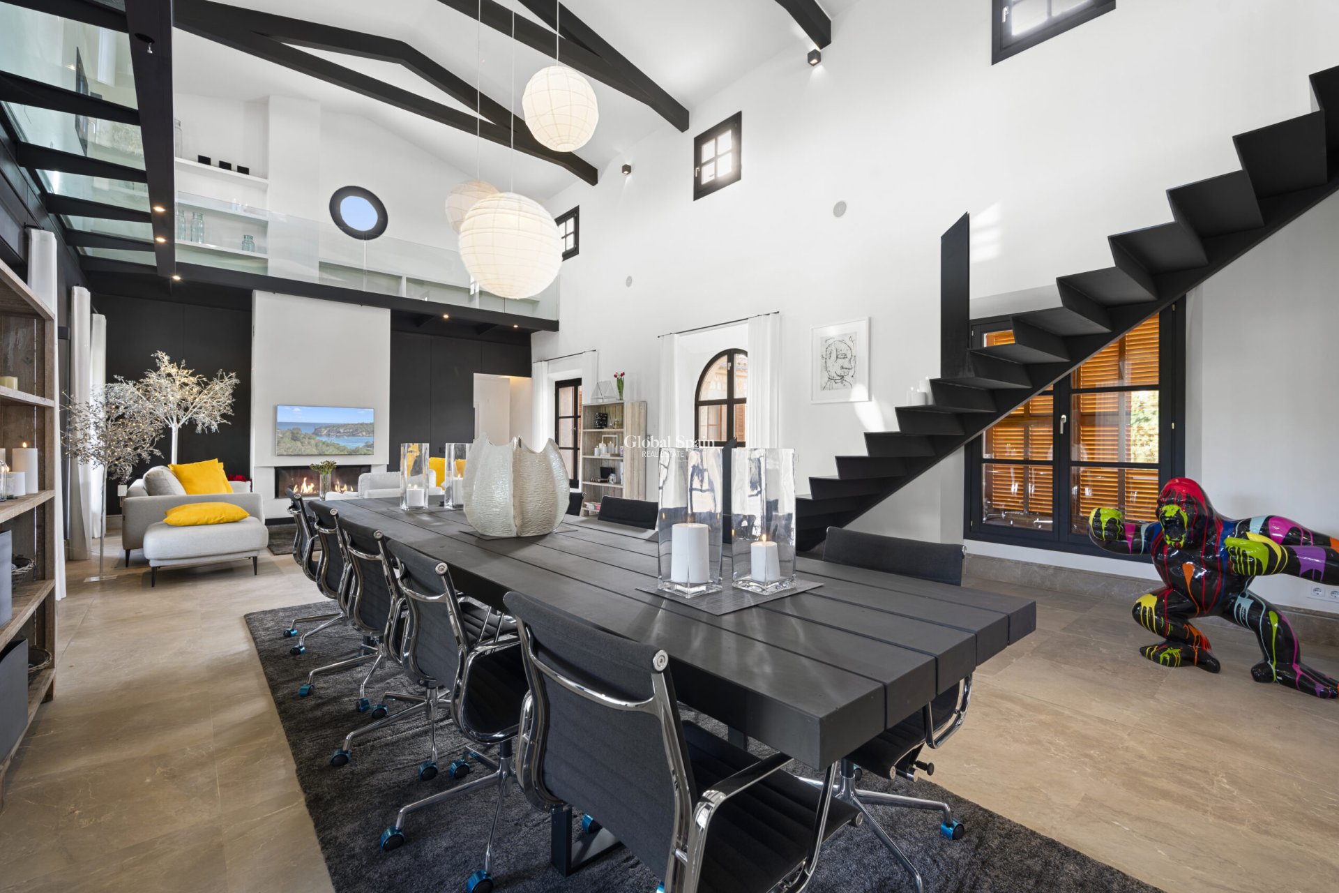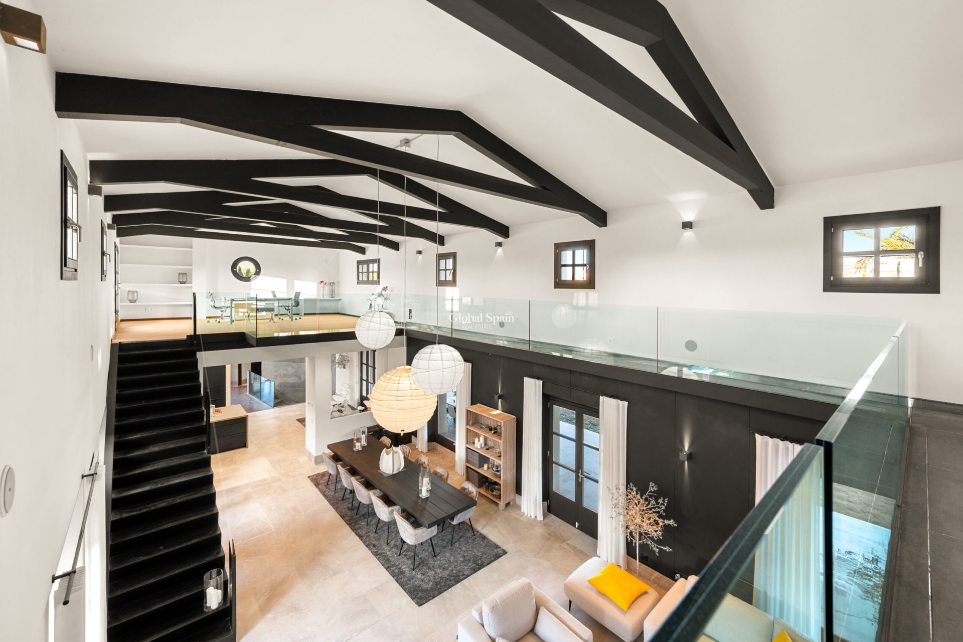 Vivez le luxe à l'état pur : un refuge spectaculaire au cœur de la nature luxuriante de Muntuiri. Nichée dans le cadre paisible des paysages verdoyants de Muntuiri, cette résidence enchanteresse témoigne d'une élégance intemporelle et d'un savoir-faire exceptionnel. Construite initialement en 2008, cette perle architecturale a fait l'objet d'une restauration complète en 2022 et 2023, garantissant ainsi la préservation impeccable de sa beauté et de sa fonctionnalité pour les générations futures. S'étendant sur un vaste terrain de 20 899,52 mètres carrés, cette propriété offre un espace et une intimité incomparables. Chaque recoin, des jardins paysagers soignés aux intérieurs conçus avec raffinement, reflète une harmonieuse alliance du luxe et de la nature. D'une superficie totale de 1 216,81 mètres carrés, la résidence principale est un chef-d'œuvre architectural, aux caractéristiques uniques qui incarnent l'art de vivre raffiné. Le rez-de-chaussée offre un vaste espace de vie de 452,81 mètres carrés, où des pièces baignées de lumière et de hauts plafonds créent une atmosphère de grandeur et de raffinement. Empruntez le majestueux escalier pour découvrir le premier étage, un havre de paix de 72,78 mètres carrés aménagé avec soin. La suite parentale vous y attend, véritable sanctuaire de sérénité avec sa cheminée, sa salle de bains privative et une vue imprenable sur le paysage environnant. L'étage comprend également une chambre VIP, une chambre avec salle de bains privative et deux chambres avec salle de bains commune, offrant ainsi un espace généreux pour la famille et les invités. Pour une intimité absolue, un appartement indépendant est disponible, avec salle de bains, petit salon et kitchenette. Idéal pour recevoir des visiteurs ou pour un séjour prolongé, ce havre de paix indépendant offre un confort et des commodités inégalés. Recevez vos invités avec élégance dans la cave à vin raffinée, où les connaisseurs pourront déguster les plus grands crus dans un cadre élégant. Un bassin de rétention naturel de 362 m², équipé d'un système de traitement des eaux usées par aération, garantit un mode de vie durable sans compromis sur le luxe. À l'extérieur, un cadre enchanteur invite à la détente et offre une multitude de plaisirs : une charmante maison de jardin, une piscine étincelante et des terrasses intimes, idéales pour les repas en plein air et les réceptions. Le sol en pierre de Binisalem, à l'intérieur comme à l'extérieur, confère une touche de charme rustique aux espaces extérieurs, créant une harmonie parfaite avec le paysage environnant. Conçue pour la vie moderne, cette résidence est dotée de tout le confort imaginable, notamment la climatisation dans toutes les pièces, le chauffage au sol et une pompe à chaleur pour un confort optimal toute l'année. Des panneaux solaires, au nombre de 21, fournissent un complément d'alimentation électrique, tandis qu'une alimentation triphasée Endesa garantit fiabilité et efficacité. Grâce à son propre système d'approvisionnement en eau et à une connexion Wi-Fi Starlink ultramoderne offrant des débits de 170 à 350 Mb/s, connectivité et durabilité s'intègrent parfaitement au quotidien. Découvrez un lieu où luxe et nature convergent en parfaite harmonie et embarquez pour un voyage vers un art de vivre raffiné au cœur de la beauté époustouflante de Muntuiri.