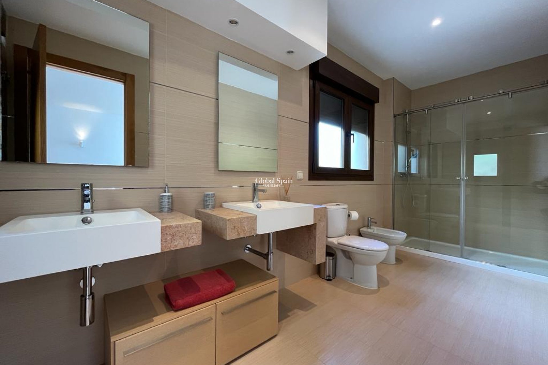 Cette luxueuse villa individuelle bénéficie d'une vue imprenable sur le parcours nord du La Manga Club. La propriété est sécurisée par un portail privé avec interphone vidéo et une allée menant à la villa. Un grand garage avec accès direct à la maison et un vaste parking complètent ce bien. L'entrée principale s'ouvre sur un vaste séjour/salle à manger lumineux, baigné de lumière grâce à ses fenêtres sur trois côtés et ses portes-fenêtres donnant sur la terrasse et la piscine. La cuisine entièrement équipée comprend un îlot central et un réfrigérateur-congélateur américain. Un cellier et une buanderie sont également présents. La villa dispose de six chambres et de cinq salles de bains. Elle est vendue entièrement meublée. Le prix indiqué n'inclut pas les frais d'acquisition. Paiement comptant : ajouter 10 %. Paiement par crédit immobilier : ajouter 12 %.