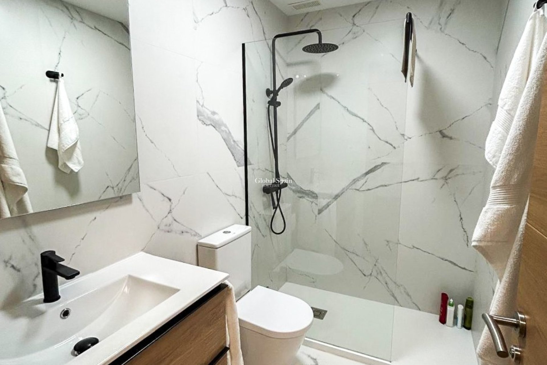 D'une superficie totale de 110 m² , ce bien immobilier allie des matériaux de haute qualité et une disposition idéale : Au rez-de-chaussée , se trouvent un vaste séjour-salle à manger avec une cuisine américaine entièrement équipée , une galerie séparée, un débarras et une salle de bains complète . Au deuxième étage , deux chambres avec accès direct à des terrasses privées , idéales pour profiter de la brise marine. Au troisième étage , une impressionnante terrasse solarium occupe tout l'étage, avec du gazon artificiel et des espaces de détente qui invitent au repos.