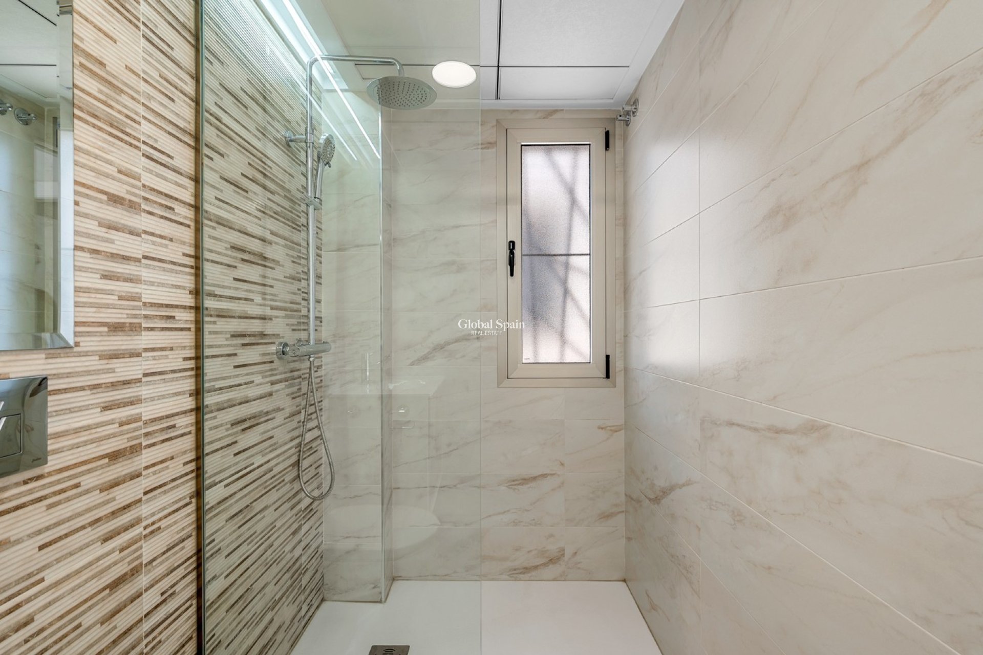 À l'étage supérieur, se trouvent deux des trois chambres, toutes deux avec accès à une magnifique terrasse de 22 m², parfaite pour se détendre et profiter des couchers de soleil et de la nature qui caractérisent Orihuela Costa.