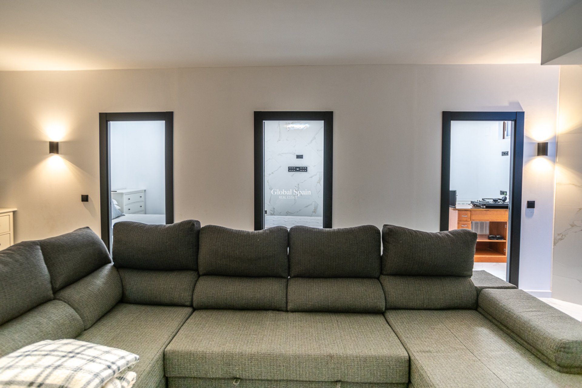 De underbuild van de villa biedt een grote leefruimte die kan worden benut als extra woon- of recreatieruimte. Hier vindt men ook drie extra slaapkamers en een badkamer, wat deze verdieping ideaal maakt voor gasten of als privéverblijf.