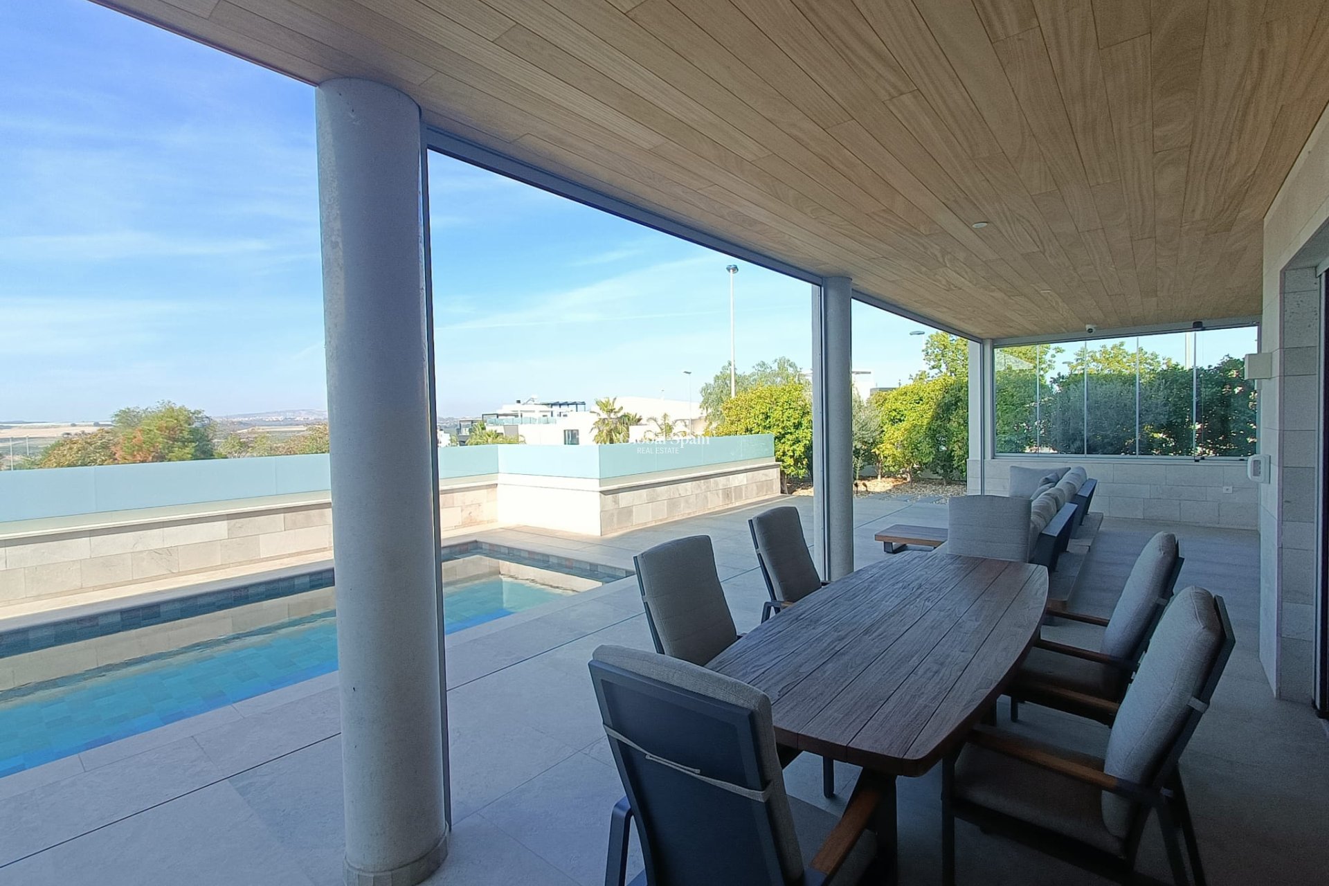 Hier is een overzicht van de villa, als u het pand via de garage betreedt, heeft u een groot gebied waar u gemakkelijk vier auto's kunt parkeren. Als u verder naar beneden loopt, heeft u veel opbergruimte en dan heeft u het systeem voor het verwarmde zoutwaterzwembad en een ultramodern waterzuiveringssysteem dat water door de villa zuivert. Als u verder rondloopt, heeft u een trap die u naar de begane grond brengt. Op dit niveau heb je een wasruimte, een toilet beneden wat altijd handig is, dan de eerste van vier slaapkamers met een eigen badkamer en inloopkasten. Dit wordt gevolgd door een grote woonkamer en keuken, die veel natuurlijk licht heeft dankzij de glazen schuifdeuren, die in de muur schuiven en toegang bieden tot het lagere terras, het zwembad en de tuinen, waardoor de overgang naadloos verloopt. Terug naar binnen is er een trap die je naar de bovenste verdieping brengt waar je een gang hebt die toegang biedt tot drie grote slaapkamers, elk met inbouwkasten en een eigen badkamer met douche. Er is toegang op dit niveau tot een op het zuiden gericht, omhullend bovenste terras, een prachtige plek om te chillen met een drankje, bij te bruinen of gewoon van het uitzicht te genieten, de keuze is aan jou.
