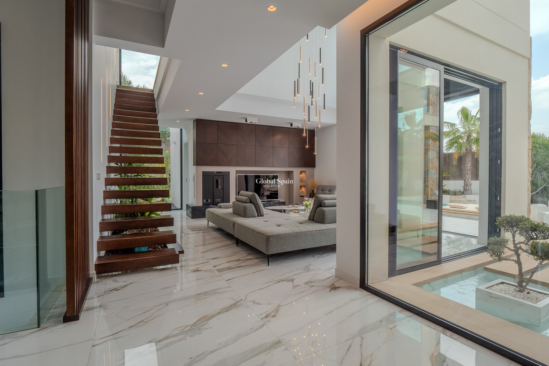 Exclusieve villa met eigentijds design en unieke kenmerken. Een verfijnde en elegante villa waar eigentijdse architectuur samenkomt met de warmte van een thuis, en die uitzonderlijke leefomstandigheden biedt voor zowel het dagelijks leven als vakanties. Een woning met strakke lijnen, absolute privacy en inspirerende ruimtes. Met 550 m² bebouwd op een perceel van 1.300 m² herdefinieert deze woning het concept van luxe wonen. Hoogwaardige materialen, goed uitgebalanceerde ruimtes en eersteklas meubilair creëren een serene en verfijnde sfeer. Bij binnenkomst wordt u verwelkomd door een honderdjarige bonsaiboom. De begane grond heeft een naadloze open indeling met een keuken, eet- en woonkamer. Grote ramen omlijsten het landschap en geven toegang tot een infinity pool die opgaat in de omgeving. Het huis is verdeeld over 4 verdiepingen, verbonden door een lift. Op de bovenste verdieping bevindt zich de master suite met en-suite badkamer, vrijstaand bad, inloopkast en een privéterras met open uitzicht. Het dak biedt een jacuzzi met panoramisch uitzicht over de golfbaan en de stad. Naast het zwembad vindt u een zomerkeuken met barbecue, ruime loungeruimtes met hangmatten en banken, en een chill-outhoek met een vuurplaats. De kelder is een veelzijdige ruimte met een eigen karakter: een garage voor zeven auto's die kan worden omgebouwd tot een privéclub of evenementenruimte, een wijnkelder met temperatuurregeling en een apart kantoor. Buiten zorgt een privé-minigolfbaan voor een unieke en vermakelijke touch. Sfeerverlichting, klimaatregeling per zone, vloerverwarming in de badkamers, zonnepanelen en 24-uurs beveiliging verhogen het comfort en de efficiëntie van deze woning, ontworpen voor wie kwaliteit in elk detail waardeert. Belangrijkste kenmerken 550 m² bebouwd / 1.300 m² perceel 4 slaapkamers met eigen badkamer + gastentoilet Infinity pool geïntegreerd in de architectuur 4 verdiepingen verbonden door lift Garage voor 7 auto's om te bouwen tot een privéclub Dakterras met jacuzzi Zomerkeuken en chill-outruimte bij het zwembad Privé minigolf Wijnkelder Onafhankelijk kantoor + multifunctionele werkplaats Vloerverwarming, klimaatregeling per zone en zonnepanelen Afgesloten complex met 24-uurs beveiliging Over Las Colinas: Las Colinas Golf & Country Club is een woongemeenschap, waar exclusieve villa's en appartementen zijn gebouwd rond een kampioenschapsgolfbaan. De par-71 baan is ontworpen door de beroemde Amerikaanse landschapsarchitect Cabell B. Robinson en aangevuld met een short game area ontworpen door golflegende Miguel Angel Jimenez. Met zijn toplocatie en eersteklas voorzieningen is het resort geëerd met de titel "Leading Villa Resort in Spain and Europe" door de World Travel Awards. Kenmerken: 18-holes par-71 Championship golfbaan Restaurants en cafés Fitnesscentrum, tennis-, basketbal- en volleybalvelden Spa en zwembad Winkel Laadstation voor elektrische auto's WOW Beach-club, met zwembad, restaurant en bar aan het strand Afstand tot: Luchthaven Alicante - 65 km, 50 min Winkelcentrum La Zenia Boulevard - 12 km, 16 min Dichtstbijzijnde supermarkt - 6 km, 10 min Beachclub - WOW Beach, 9 km, 15 min Jachtclub "Dehesa de Campoamor" - 8 km, 15 min Dichtstbijzijnde ziekenhuis, Centro Medico Ribera Campoamor - 12 km, 16 min