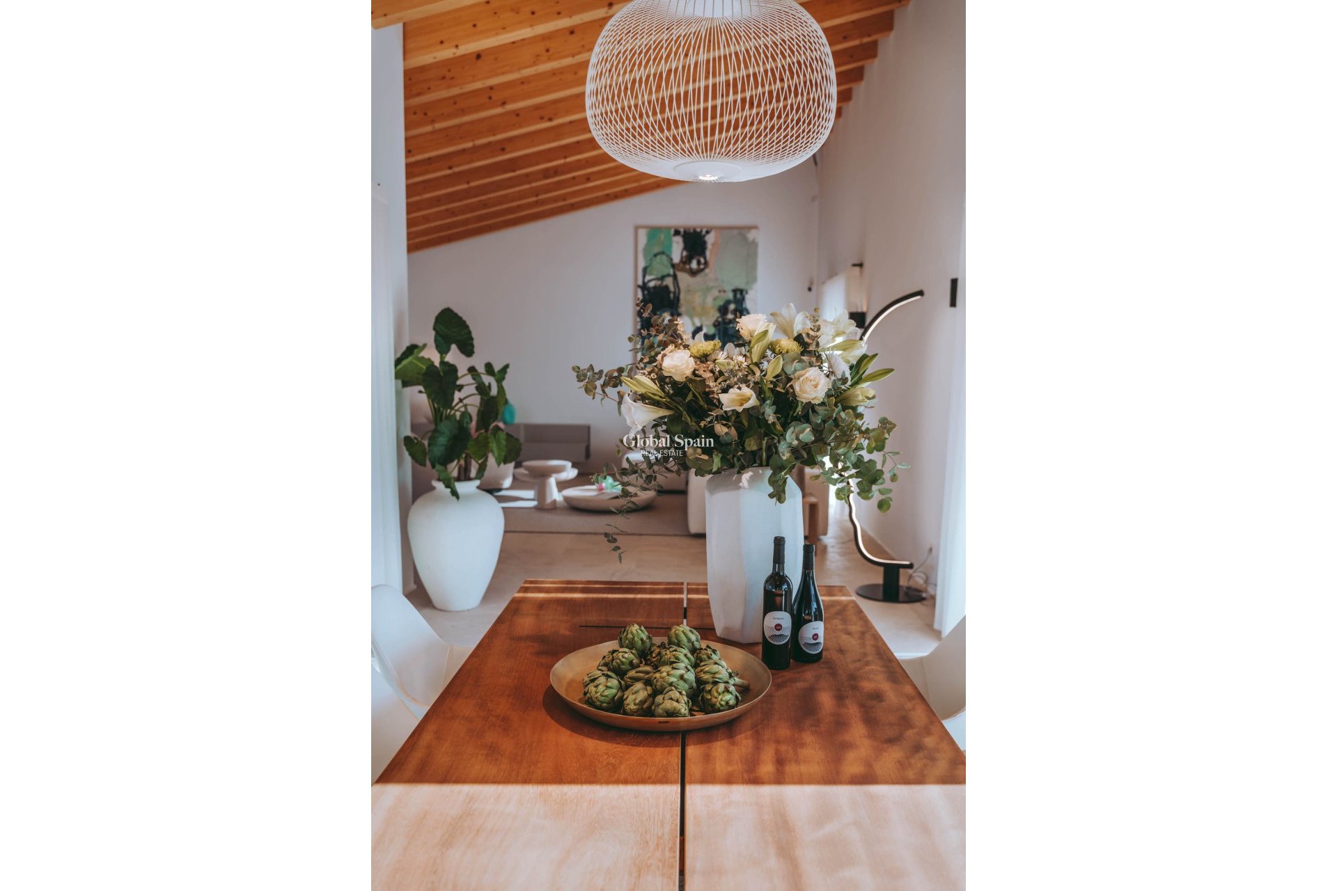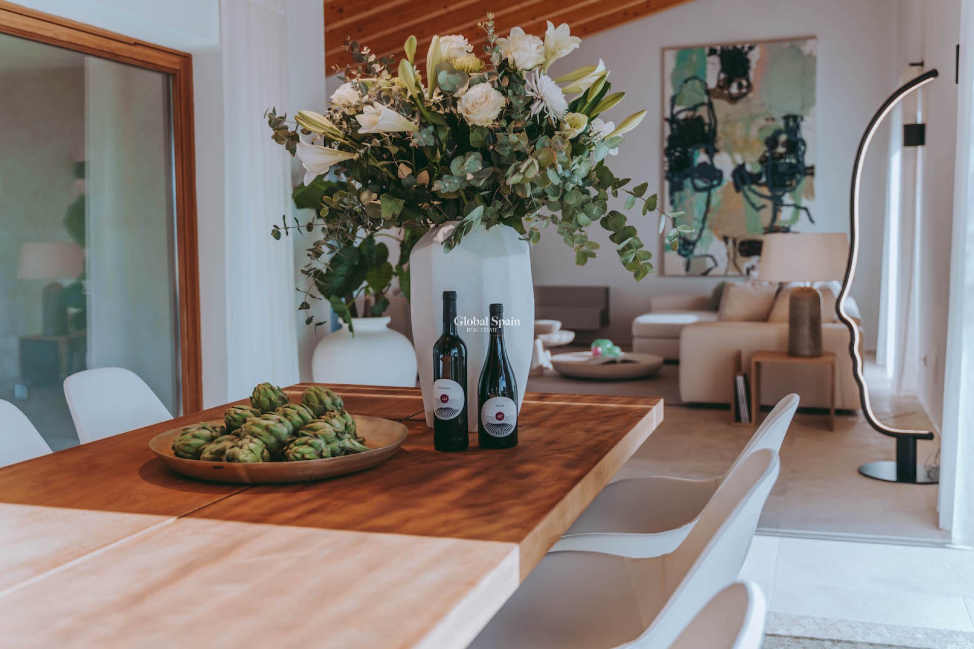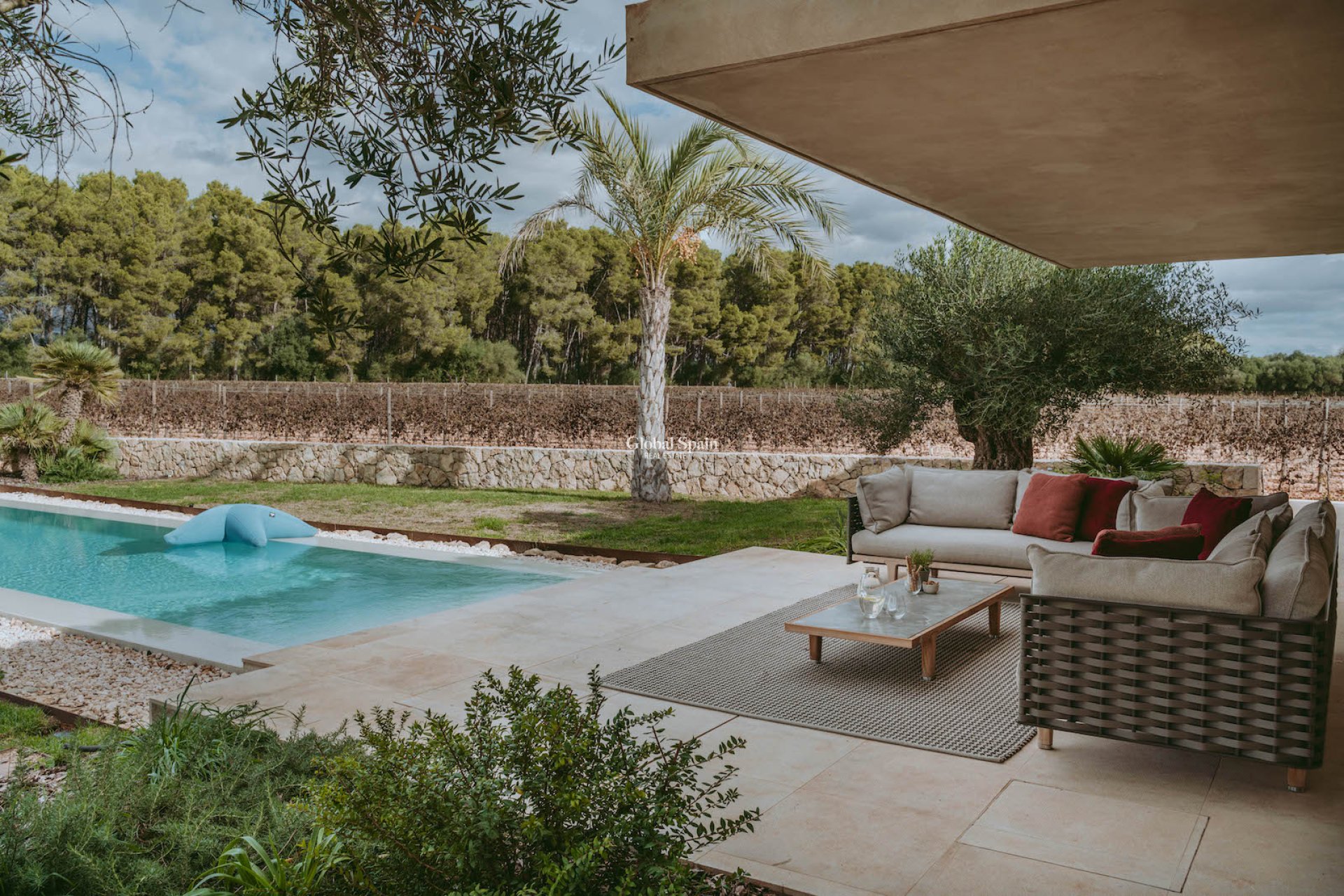 Ongeëvenaarde nieuwbouwvilla's met wijngaarden in Biniali. Droomt u van een huis gelegen in een rustig wijnbouwgebied met een onovertroffen uitzicht op de bergen? Zoek dan niet verder. Deze 4 ultramoderne villaprojecten, omgeven door eigen wijngaarden, tillen elegantie en grandeur naar ongekende hoogten. Het zeer luxueuze woonconcept biedt een imposante entree, een zeer royale woon- en eetkamer met open keuken en directe toegang tot de gedeeltelijk overdekte en open terrassen met uitzicht op de bergen. In totaal beschikken de villa's over 4 slaapkamers, allemaal met een eigen badkamer, een kleedkamer of inloopkasten. Een gastenbadkamer en een royale wijnkelder om die heerlijke wijn te bewaren, die vlak voor uw ogen groeit. Deze fantastische woningen, elk gelegen op een perceel van ca. 1700-2200 m², worden omgeven door een moderne raampartij die licht en een gevoel van grootsheid geeft. Een prachtig zwembad met een weelderige tuin omringt het gehele terrein. De overvloed aan grote ramen en aangrenzende patio's en terrassen, sommige overdekt en allemaal in verschillende richtingen gericht, roept een levendige verbinding op met de natuur buiten, waardoor de omgeving deel uitmaakt van het leven op het landgoed. De buitenkant van het landgoed heeft een indrukwekkend landschapsproject, dat een groot gebied met wijngaarden, palmbomen en olijfbomen omvat, die dit landgoed tot een waar mediterraan juweel zullen maken. Naar verwachting zullen er eind 2023 2 huizen beschikbaar zijn, daarna nog 2 huizen met Pasen 2024. Kenmerken: Wijnkelder Vloerverwarming Water uit eigen bron Climalit-ramen Garage Zonnepanelen Airconditioning warm en koud Informatie en situatie naar Biniali De verbinding met Binissalem en met de snelweg met verbinding naar Palma en Pollensa is zeer goed. Biniali is een dorp dat deel uitmaakt van de gemeente Sencelles, in het binnenland van Mallorca. Het land maakt deel uit van de wijnstreek van de oorsprongsbenaming Binissalem. Biniali ligt op ongeveer 25 minuten van het centrum van Palma en op slechts 12 kilometer van de stad Inca. Als u rust en stilte wilt ervaren, moet u Biniali bezoeken. Hier vindt u nog steeds de Spaanse rust en kalmte. In het dorp kunt u een soort bijzondere stilte ervaren – die zeer aangenaam is – ver weg van de drukte van toeristen aan de kust. Hier kunt u het typische Mallorcaanse dorp in al zijn glorie ervaren en misschien vindt u een beetje kalmte om de hectiek van het dagelijks leven te vergeten. Hier wonen slechts 250 inwoners. De plaats behoort tot de kleine woonwijken van het eiland. De naam van de hogere regio is Plá de Mallorca, hoewel het dorp tot de gemeente Sencelles behoort. Biniali en omgeving staan bekend om de wijnbouw. Inwoners: ca. 250. Wekelijkse markt in Sencelles: woensdag. Afstand tot luchthaven: 30 km. Excursies: Markt in Inca op donderdag, Festival Park Marratxi, Golfbaan Puntiro.