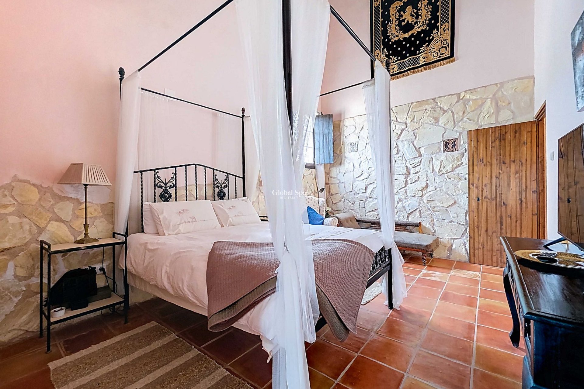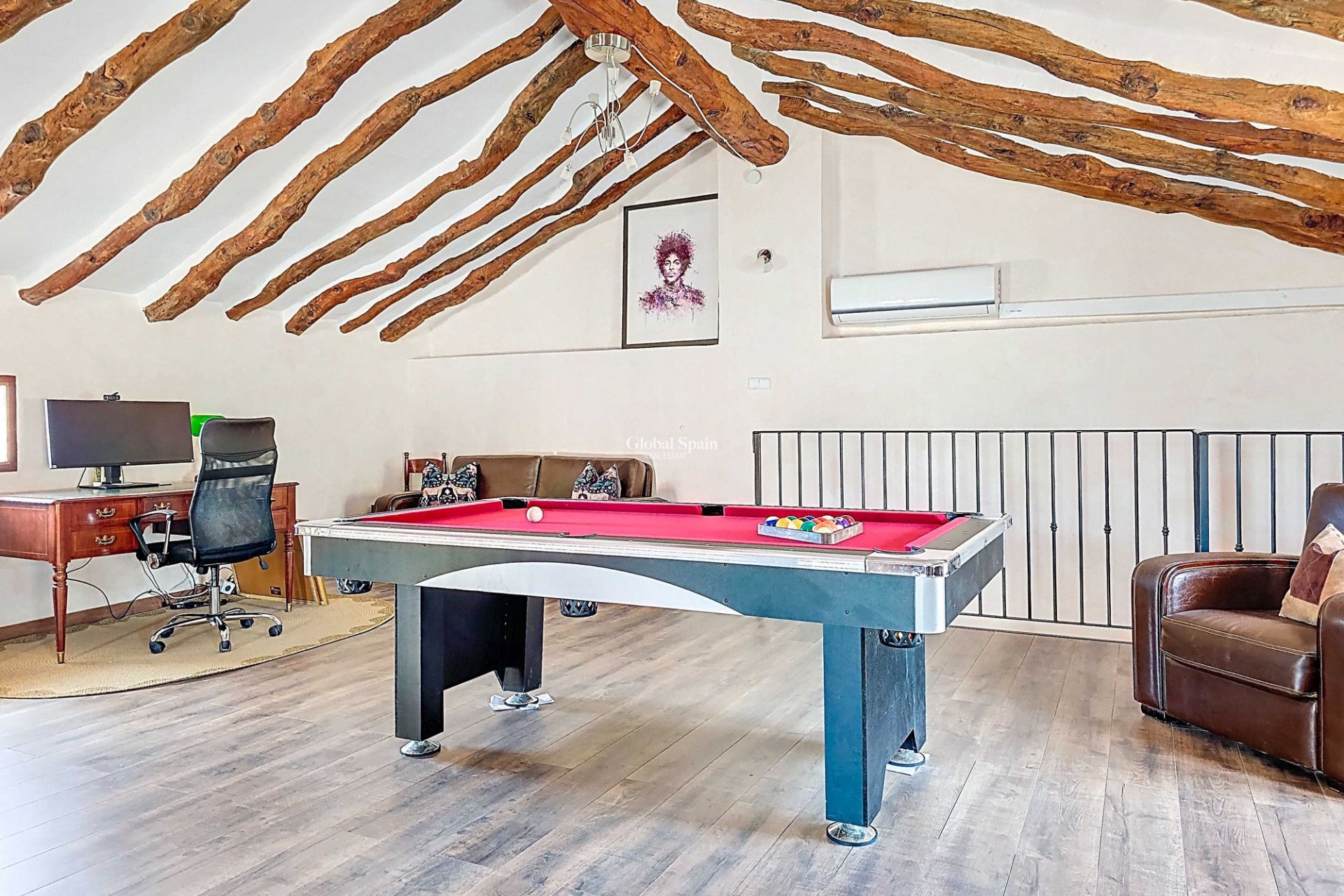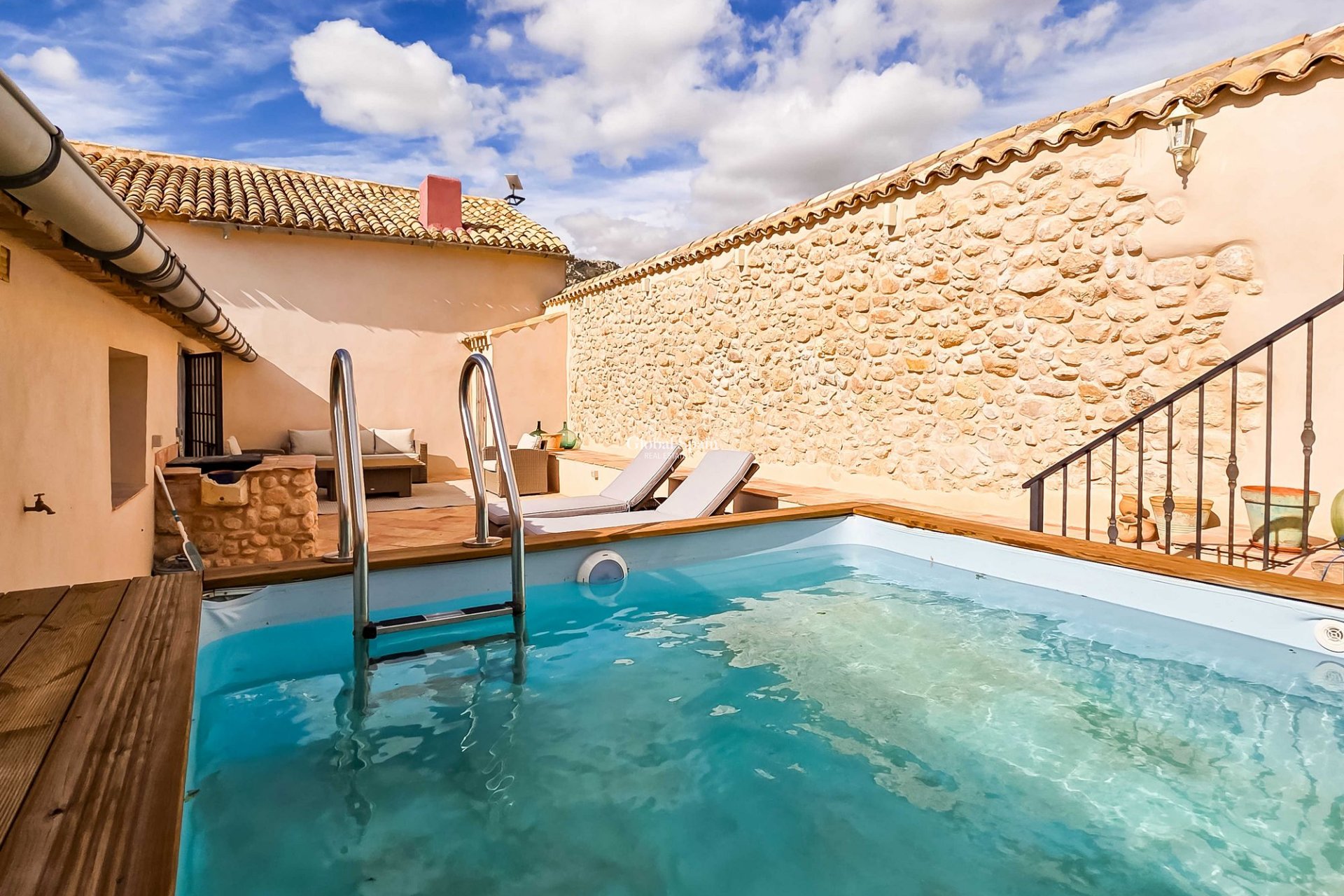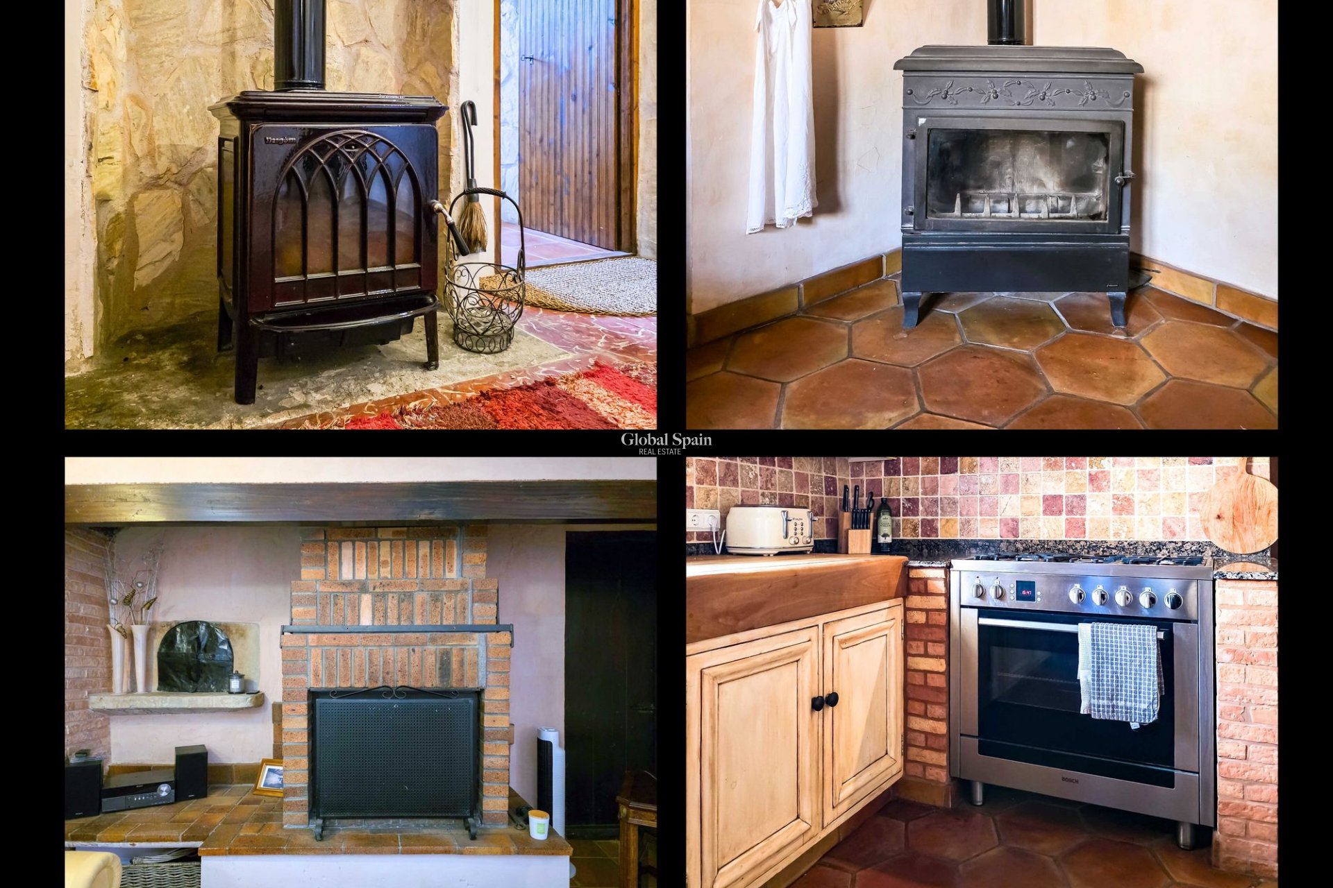 De woningDe woning is verdeeld in diverse niveaus. Via de entree stap je binnen in een ruime gang die aan weerszijden een slaapkamer heeft. De gang komt uit op een royale ruimte die een gezellige zitruimte biedt bij de haard. Hier bevindt zich ook een aparte badkamer en er is toegang tot een riante slaapkamer met ensuite badkamer. Het enorme hoge plafond in deze slaapkamer is een echte eyecatcher. De slaapkamer is voorzien van inbouwkasten.Via het zitgedeelte is er toegang tot een hoger gelegen deel van de woning en een lager gelegen deel. In het hoger gelegen deel bevindt zich de enorme leefkeuken met bijkeuken en houtkachel, en is er toegang tot de onlangs gerealiseerde buitenruimte met plunge pool. Het is een fantastische ruimte om in alle privacy te kunnen genieten van de Spaanse zon.Via de keuken - met aparte zithoek - is een enorme woonkamer bereikbaar die weer toegang biedt tot een hoger gelegen tweede woonkamer (vloer vernieuwd in 2025 en met geïsoleerd dak). Natuurlijk kunnen deze ruimten ook een andere functie krijgen.Vanuit de keuken is er via een trap en gang toegang tot een slaapkamer met eigen badkamer (ligbad en douche). Dan is er ook nog het lager gelegen deel (hetzelfde als de entree) van de woning; hierin is een woonkamer (met kachel en zelfs met originele broodoven) met slaapkamer en eigen badkamer gelegen.