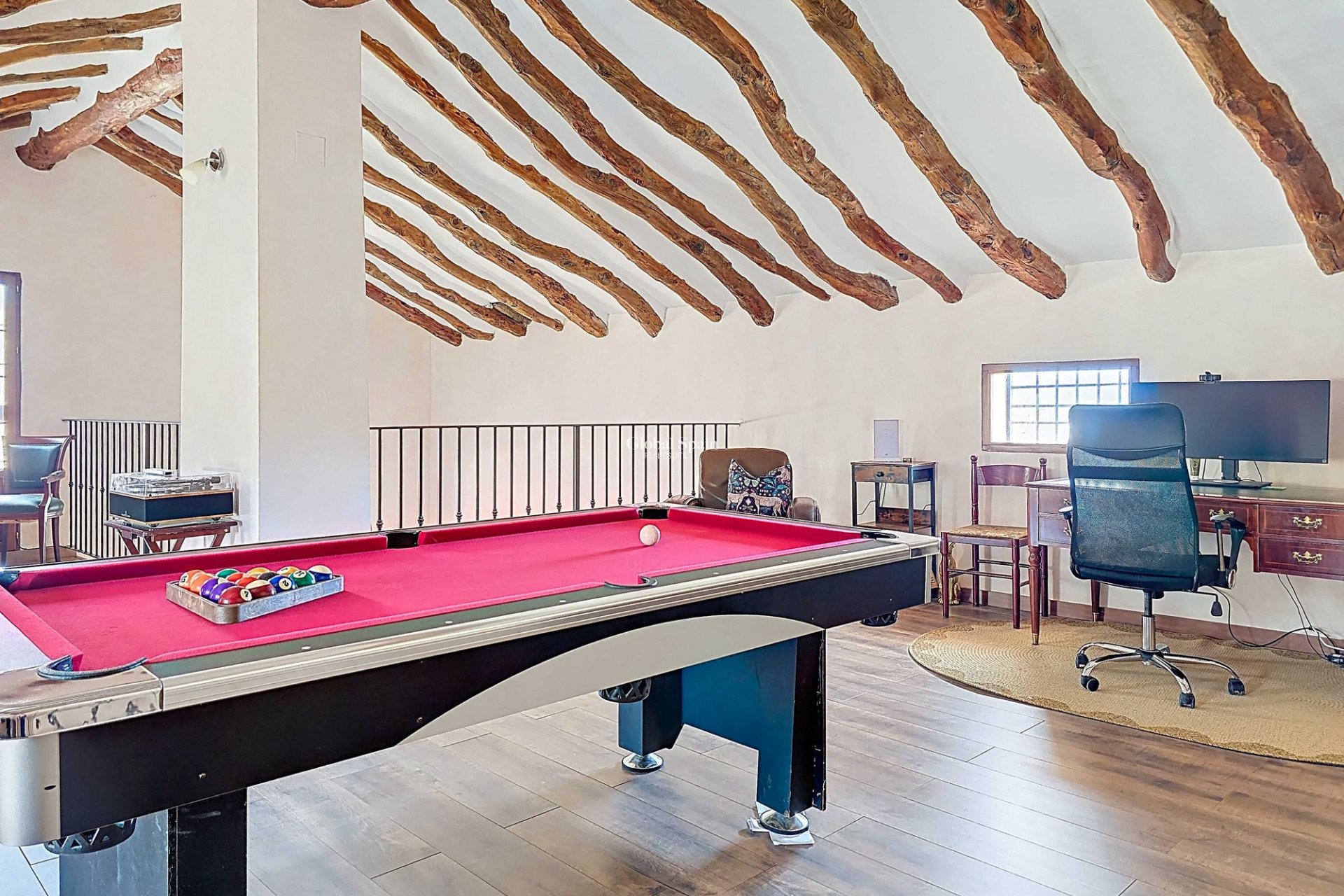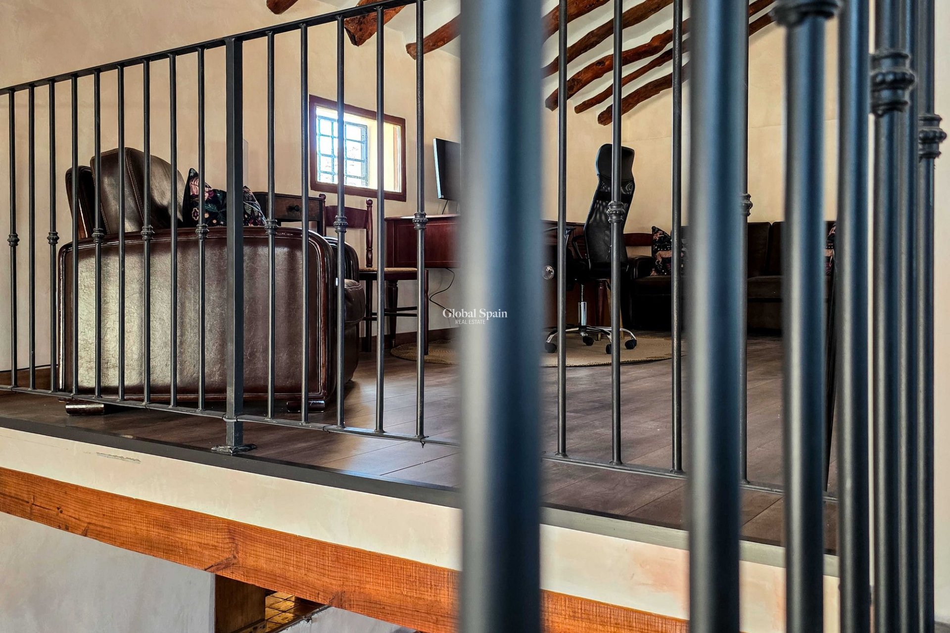 Aan de voet van de Sierra del Carche, omgeven door wijn-, amandel- en olijfboomgaarden, staat dit bijzondere en riante landhuis. Ooit een wijnmakerij met stallen, is het door de familie van de huidige eigenaren liefdevol gerestaureerd met natuurlijke materialen. Originele antieke vloeren, deuren en details zijn behouden gebleven. Er zijn oude terracotta tegels gebruikt en bijna 150 balken zijn gerestaureerd, behandeld en gevoed met natuurlijke oliën. De gehele restauratie was gebaseerd op één principe: het karakter van het huis behouden en het tegelijkertijd leefbaar en praktisch maken. De indeling zo is ontworpen dat de kamers op natuurlijke wijze in elkaar overvloeien. Het resultaat is een huis waarin iedereen zijn eigen royale ruimte heeft, maar authentiek, gastvrij en verbonden aanvoelt ondanks de enorme afmetingen ervan.