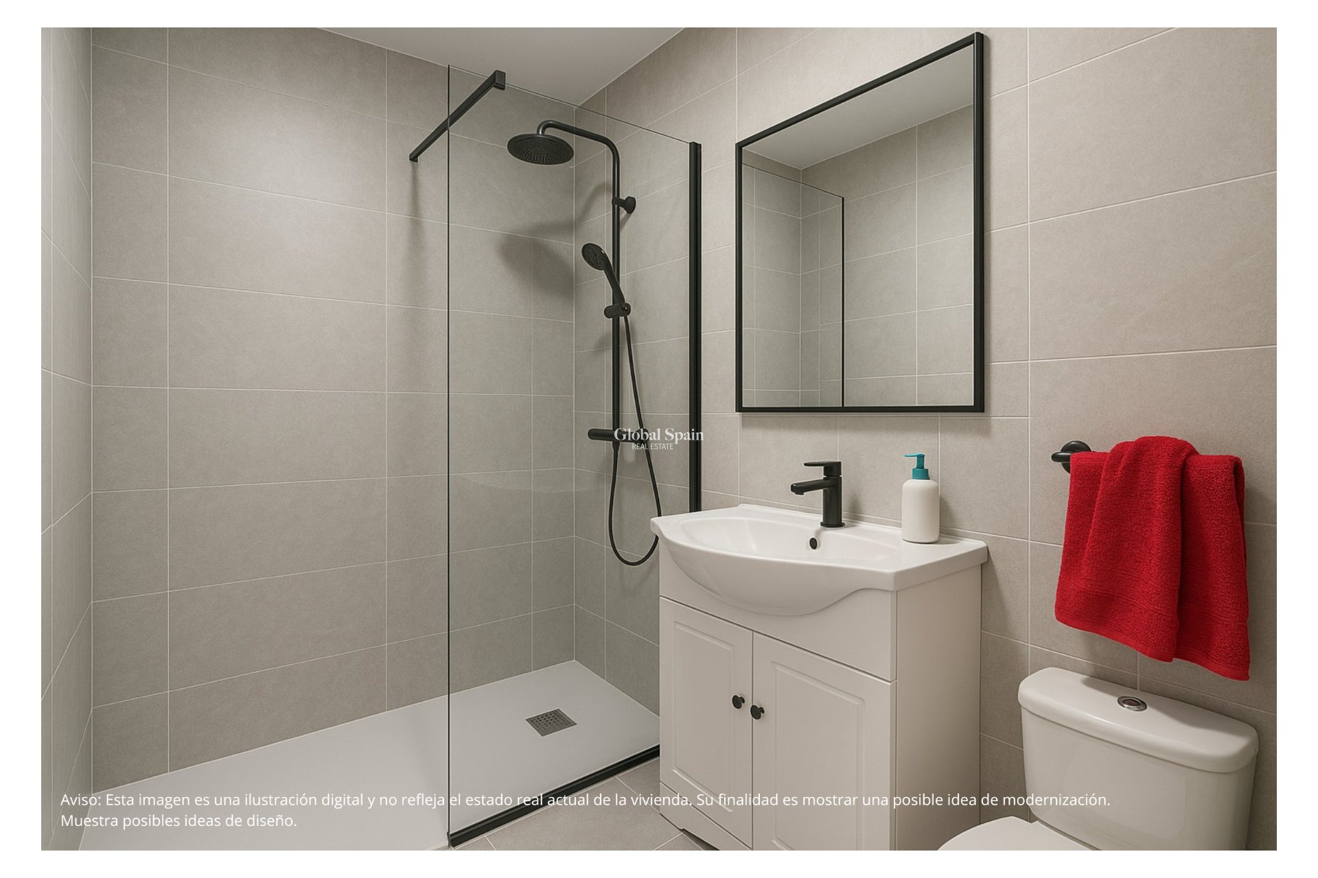 Deze tussenwoning van 86 m² is te koop in El Mojón, een van de rustigste kustgebieden van Pilar de la Horadada, op slechts 300 meter van zee, dichtbij stranden, boulevard en parken, en omgeven door supermarkten, restaurants en sportfaciliteiten.De woning is verdeeld over twee verdiepingen:Begane grond: ruime woon-/eetkamer van 22 m², ideaal voor gezinnen; aparte keuken met apparatuur; slaapkamer op deze verdieping; volledige badkamer; en een berging voor fietsen of strandspullen. Voorterras om van het buitenleven te genieten.Eerste verdieping: twee lichte slaapkamers met ingebouwde kasten, badkamer en privéterras.Op het dak een privé dakterras/solarium, perfect om te zonnen of te ontspannen.Dankzij de uitstekende ligging is deze woning ideaal als vaste woning of vakantiehuis aan de Costa Blanca Zuid.