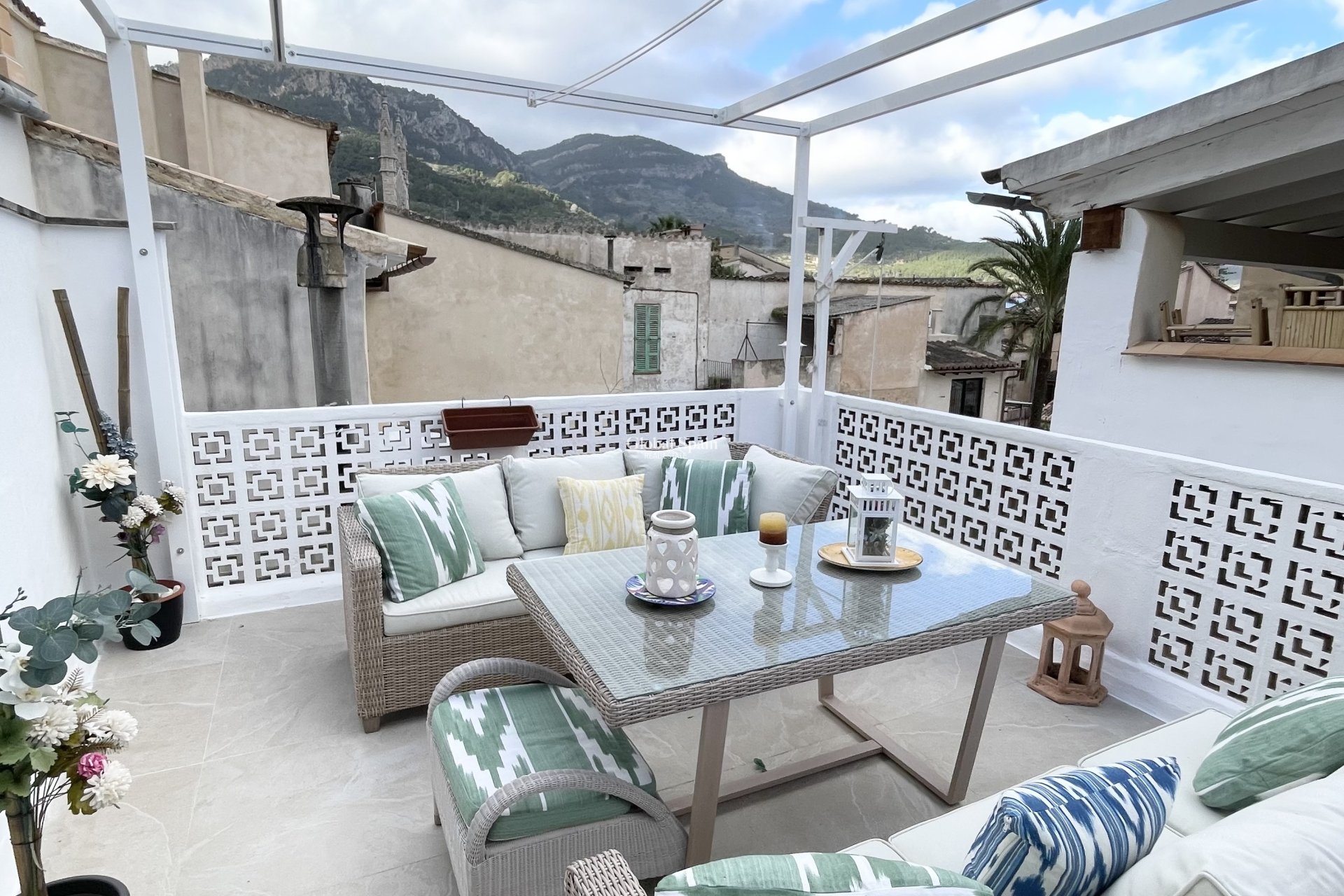 Charmant herenhuis met diverse terrassen en een ruim dakterras in het hart van Sóller. Gelegen in een rustige zijstraat in het centrum van het prachtige Sóller, combineert dit karaktervolle herenhuis traditionele Mallorcaanse charme met modern comfort. De woning ligt op loopafstand van het centrale plein, cafés, winkels en het bruisende nachtleven, maar geniet tegelijkertijd van een rustige en privéomgeving. Het huis is verdeeld over meerdere verdiepingen met een functionele indeling en lichte woonruimtes die een warme en uitnodigende sfeer creëren. Doordachte materialen en details geven karakter, terwijl moderne voorzieningen zorgen voor dagelijks comfort. De woning biedt diverse buitenruimtes van verschillende groottes. Vanuit de keuken is er toegang tot een klein, gezellig terras van ca. 7 m², ideaal om te genieten van een kopje koffie of een glas wijn tijdens het koken. Er is ook een privéterras van ca. 7,5 m² grenzend aan een van de slaapkamers, perfect voor rustige ochtenden of avonden. Bovenaan het huis bevindt zich het grote dakterras van ca. 25 m², dat dient als de belangrijkste buitenruimte – ideaal om te zonnebaden, te ontspannen en gezellig samen te zijn met familie en vrienden. Op de begane grond bevindt zich tevens een kleine, praktische buitenruimte van circa 9 m² (een doorgang) die toegang geeft tot een berging van circa 5 m², geschikt voor fietsen en andere praktische spullen (deze ruimte is niet zichtbaar op de foto's). Deze woning is zowel geschikt als permanente woning als vakantiehuis en is een uitstekende optie voor wie op zoek is naar een authentiek huis in een van de meest gewilde bergdorpjes van Mallorca.