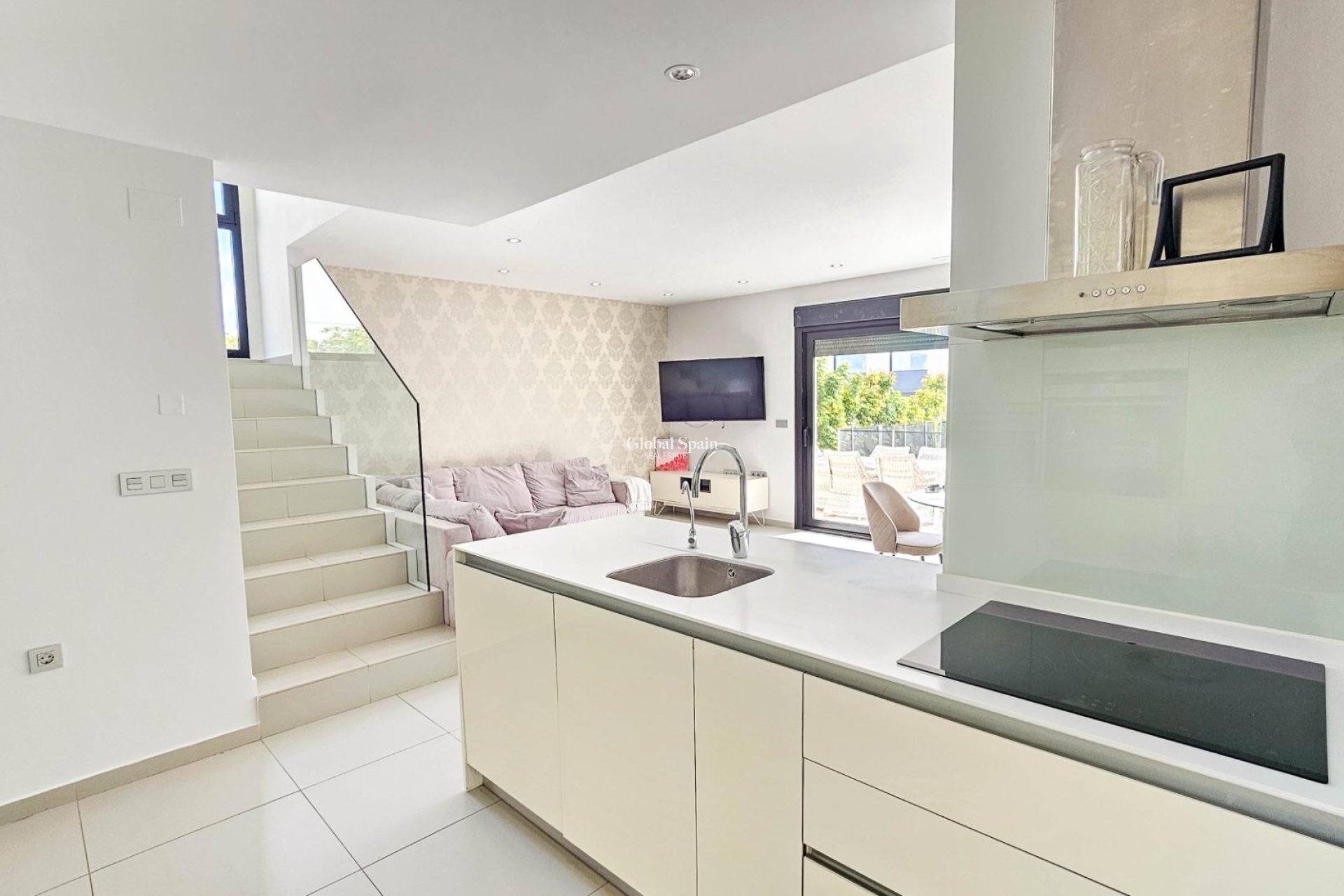Wij presenteren deze prachtige villa in moderne stijl, gelegen in een rustige en goed verbonden woonwijk — een ideale plek voor wie comfort, privacy en een hoge levensstandaard waardeert. Gebouwd in 2014, combineert dit pand modern design met hoogwaardige materialen en een doordachte indeling die optimaal comfort in elke kamer biedt. De villa heeft een totale bebouwde oppervlakte van 125 m² op een perceel van 300 m². Het huis beslaat twee verdiepingen met een ruim dakterras — een perfecte plek om te zonnebaden en het hele jaar door van het uitzicht te genieten. Op de begane grond bevindt zich een lichte en ruime open woonkamer met eetgedeelte, verbonden met een volledig uitgeruste moderne keuken. Hier bevindt zich ook de hoofdslaapkamer met inloopkast, een complete badkamer en een gastentoilet, allemaal met directe toegang tot de tuin en het privézwembad. Op de eerste verdieping zijn nog twee grote slaapkamers en een extra badkamer, allemaal gevuld met natuurlijk licht en met toegang tot een privéterras. Een buitentrap leidt vanaf deze verdieping naar het solarium, een privéruimte voor ontspanning, gasten ontvangen of genieten van het mediterrane klimaat. De villa is uitgerust met centrale airconditioning, vloerverwarming door het hele huis en wordt volledig gemeubileerd verkocht, klaar om in te trekken. De buitenruimte combineert ontspanningszones met een prachtig privézwembad, ideaal voor het genieten van buitenlucht in volledige privacy. Daarnaast is er een parkeerplaats op het perceel, wat gemak en veiligheid garandeert. De moderne architectuur, hoogwaardige afwerking en ruime interieurs maken deze villa een uitstekende keuze voor permanent wonen of als vakantiehuis. Deze villa belichaamt de essentie van Mediterrane comfort: ruimte, licht, stijl en een uitstekende locatie in een rustige en praktische buurt. Een perfecte woning voor wie wil genieten van zon, privacy en luxe.