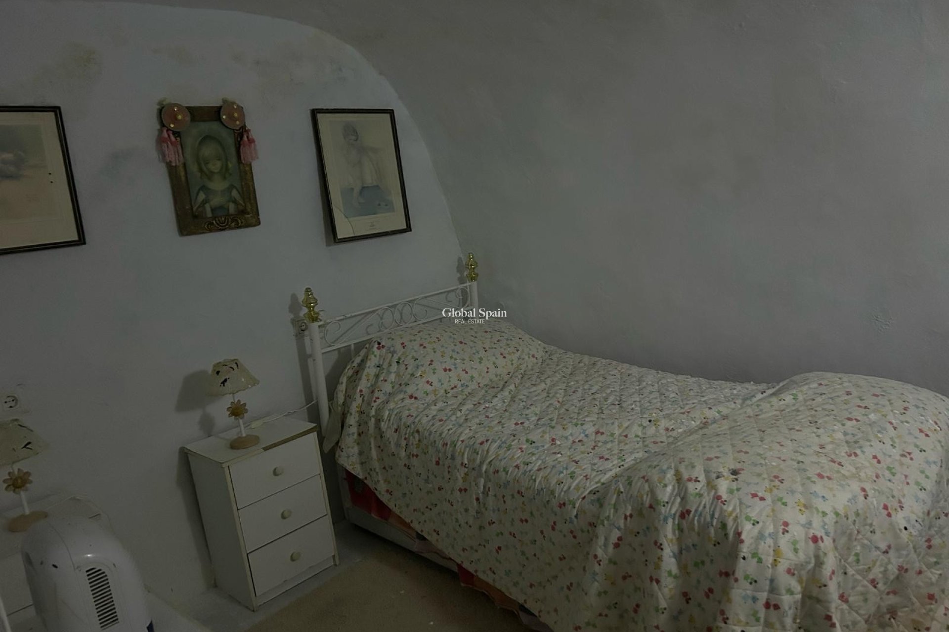 To dobrze wyposażony dom w jaskini z 4 sypialniami, z dużym krytym naya i domem z 2 sypialniami zbudowanym nad nim z 80 m2 otwartym salonem z kominkiem, jadalnią i kuchnią prowadzącą do dużego pomieszczenia gospodarczego i łazienki. Wewnętrzne wejście do domu w jaskini jest przez dobrze oświetlone schody. Do obu sekcji można wejść osobno i używać ich jako dwóch oddzielnych mieszkań. Z tyłu domu znajduje się duży garaż i kilka budynków gospodarczych. Z przodu znajduje się basen z tarasem z widokiem na sad i góry przez dolinę. Cała nieruchomość jest ogrodzona i są dwa zestawy bram dla pojazdów. Należy pamiętać, że dom wymaga remontu, stąd niska cena.