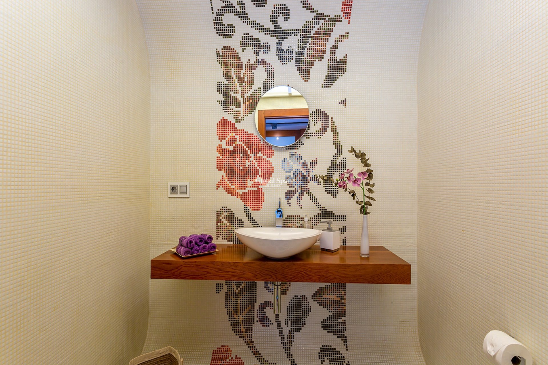 Wolnostojąca willa w pierwszej linii pola golfowego w La Finca. Odkryj tę fantastyczną willę w stylu śródziemnomorskim w uprzywilejowanej lokalizacji. Willa o powierzchni 721 m², zbudowana na 3 piętrach, położona na działce o powierzchni 1150 m². Na parterze znajduje się hol wejściowy i toaleta dla gości, prowadzące do przestronnego salonu z kominkiem i widokiem na basen i pole golfowe. Do dyspozycji Gości jest również oddzielna kuchnia i jadalnia. Na piętrze znajduje się przestronna sypialnia z łazienką en-suite. Na piętrze znajduje się duży salon z dostępem do różnych pomieszczeń. Na drugim piętrze znajdują się 3 sypialnie, 2 łazienki i gabinet z wyjściem na duży taras z widokiem na pole golfowe. W piwnicy znajduje się przestronna sypialnia, kino domowe, spiżarnia, piwnica oraz garaż na 5 samochodów. Dodatki do domu: Wysokiej jakości meble, Ogrzewanie podłogowe na parterze i piętrze, Klimatyzacja w całym domu, Basen o wymiarach 10 x 5 m z elektryczną pokrywą, Miejsce do grillowania o powierzchni 50 m2, Automatyka domowa, Monitoring wideo, Prywatne wejście na pole golfowe, La Finca Golf, zdecydowanie należy do 3 najlepszych pól golfowych na Costa Blanca. Pole jest stale modernizowane i ulepszane. Zarówno pole, jak i teren treningowy są w idealnym stanie przez cały rok. Ośrodek jako całość stał się drugim najbardziej ekskluzywnym ośrodkiem w okolicy. Na terenie ośrodka znajduje się imponujący klub golfowy z restauracją i barem, 5-gwiazdkowy hotel spa, w pełni wyposażone zaplecze sportowe, a także znakomita włosko-meksykańska restauracja. Ta wyjątkowa nieruchomość ma niezwykłą lokalizację przy greenie na dołku 10. Nieruchomość położona jest na wzgórzu, z którego roztacza się niezwykły i niczym niezakłócony widok na cały ośrodek. Przed Tobą znajduje się pole golfowe, hotel spa i klub. Jest to również jedyna nieruchomość z własnym, bezpośrednim dostępem do pola golfowego. Możesz stąd wyjechać swoim buggy z własnego garażu.