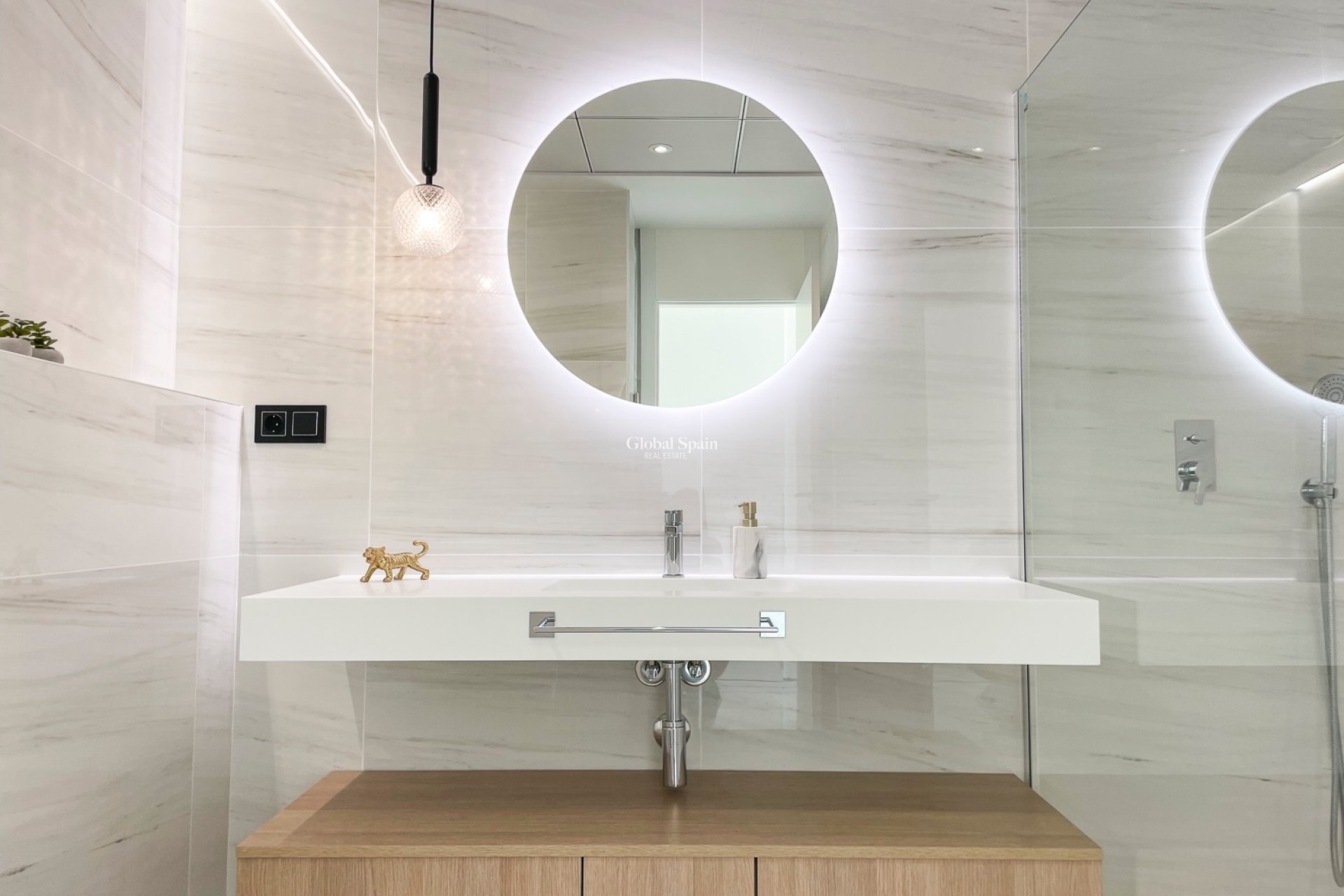 Ten 124-metrowy apartament, zbudowany w 2022 roku, znajduje się w strzeżonym osiedlu na wybrzeżu, oferując spokojny i komfortowy styl życia na Costa Blanca. Nieruchomość posiada 3 przestronne sypialnie i 3 pełne łazienki, zaprojektowane z wysokiej jakości materiałów i nowoczesnego wykończenia. Taras o powierzchni 48 m² zapewnia spektakularne widoki na morze i wychodzi na bujne zielone tereny kompleksu, tworząc idealną przestrzeń do relaksu lub posiłków na świeżym powietrzu. Apartament jest w pełni umeblowany i wyposażony dla wygody, w tym w klimatyzację, wentylatory sufitowe i wbudowane szafy. Układ jest funkcjonalny, zapewniając mnóstwo naturalnego światła i efektywne wykorzystanie przestrzeni. Osiedle oferuje doskonałe udogodnienia, takie jak designerski basen wspólny, ogrody tropikalne i tereny zielone. Ponadto nieruchomość obejmuje prywatny basen i prywatny ogród dla dodatkowej ekskluzywności. Dla wygody apartament posiada prywatny podwójny garaż i pomieszczenie gospodarcze. Bezpieczeństwo jest zapewnione dzięki systemowi alarmowemu i kontrolowanemu dostępowi do osiedla. Dzięki orientacji wschodniej ten dom zapewnia zapierające dech w piersiach widoki na wschód słońca nad morzem i spokojne otoczenie, w którym można cieszyć się życiem na wybrzeżu. Położony w Villajoyosa, rozwijającej się miejscowości na Costa Blanca, ten apartament jest doskonałym wyborem dla osób poszukujących stylowego i prywatnego domu nad morzem.