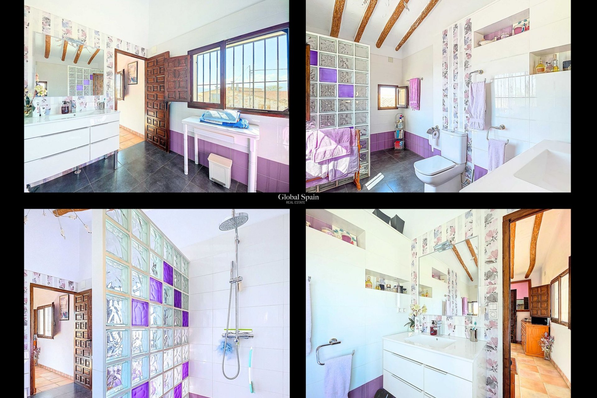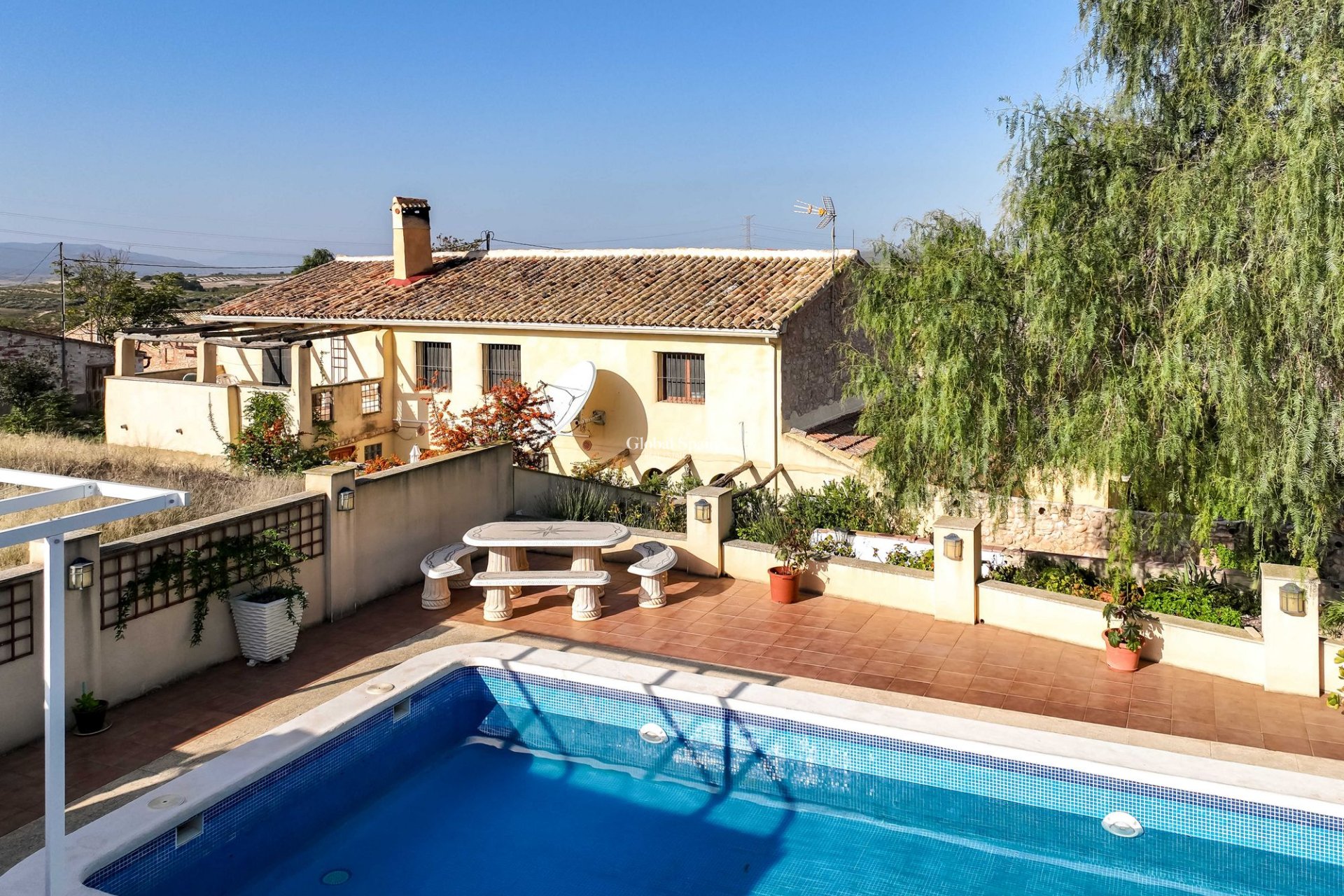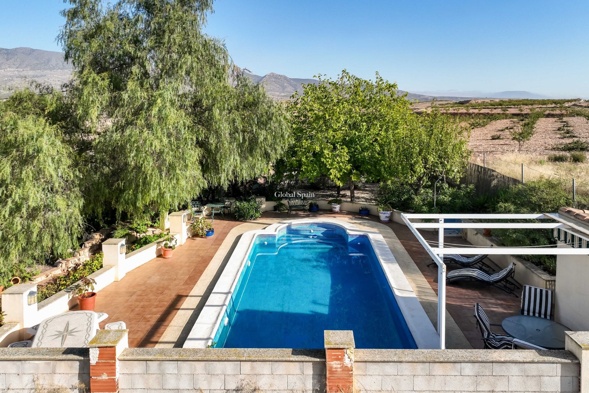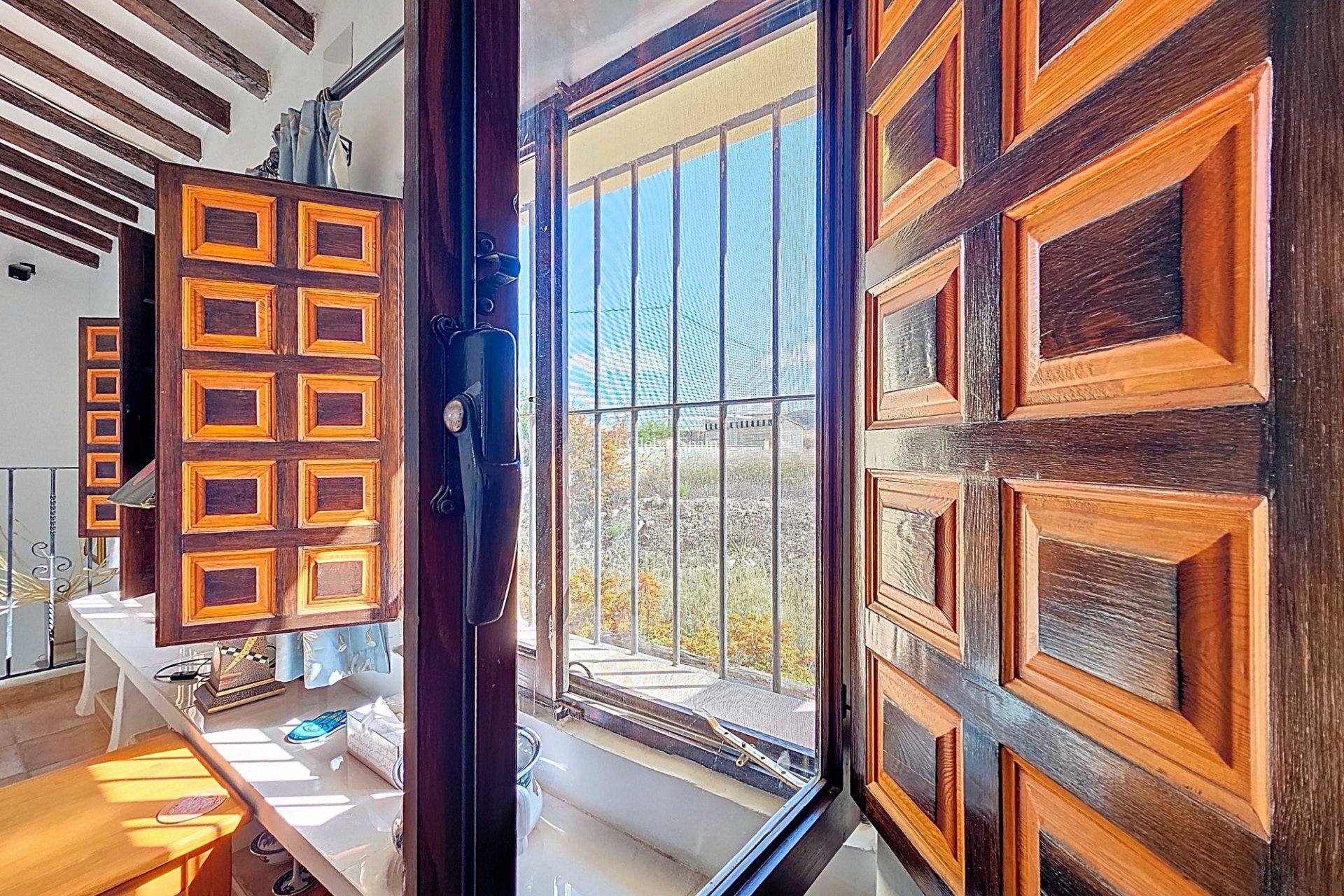 Przestronny dom wiejski z pięknym prywatnym ogrodem, basenem i dwoma garażami Ten uroczy dom wiejski rozciąga się na dwóch piętrach i posiada przytulne patio, które przechodzą w pięknie zagospodarowany ogród z basenem. Posiada również dwa garaże. Nieruchomość jest spokojnie położona w małej wiosce między Pinoso i Jumilla, otoczona wspaniałą przyrodą i panoramicznymi widokami. Nieruchomość jest wystawiona na wyłączność, co oznacza, że wszystkie dokumenty zostały sprawdzone z wyprzedzeniem i wszystko jest w porządku lub może zostać uporządkowane. Dom – parter Na parterze, po obu stronach dużego holu wejściowego, znajdują się dwie sypialnie. Przez podwójne drzwi wchodzi się do przytulnego salonu, który prowadzi do bardzo przestronnego garażu. Garaż ten może być z łatwością wykorzystany jako warsztat lub studio, a po drobnych przeróbkach może również służyć jako idealne biuro domowe. Z salonu można również wyjść na piętro, a pod schodami znajduje się wygodne miejsce do przechowywania. Po drugiej stronie parteru znajduje się przestronna kuchnia, a za nią urocza jadalnia. Z jadalni jest dostęp do pomieszczenia gospodarczego/pralni, osobnej toalety oraz tarasów, które wychodzą na piękny ogród. Dom – parter Na piętrze znajdują się cztery sypialnie, z których jedna posiada garderobę i łazienkę. Ta przestronna sypialnia główna ma również dostęp do tarasu. Na piętrze znajduje się również duża łazienka, schowek, a nawet drugi przestronny salon. Działka Oprócz garażu znajdującego się obok salonu, znajduje się drugi, oddzielny garaż. Ogród z tarasami jest pięknie zagospodarowany starymi drzewami i oferuje wiele możliwości korzystania zarówno ze słońca, jak i cienia. Ogród i basen są całkowicie prywatne. Obok basenu znajduje się domek przy basenie z miejscem do przechowywania. Wyposażenie Obecni właściciele przez lata odnawiali nieruchomość, zachowując jej rustykalny urok i atmosferę, wyposażając ją we wszystkie nowoczesne udogodnienia. W domu znajdują się trzy piece opalane drewnem (w obu salonach i jadalni), a okna wyposażone są w atrakcyjne drewniane okiennice i moskitiery. Dom jest podłączony do prądu i wody. Lokalizacja: Nieruchomość znajduje się w małej i spokojnej wiosce w Torre del Rico, pomiędzy Pinoso i Jumilla. To piękna wiejska okolica, w której wciąż żywe jest tradycyjne hiszpańskie życie. Zarówno Pinoso, jak i Jumilla oferują wszystkie udogodnienia, takie jak supermarkety, szkoły, ośrodek zdrowia, obiekty sportowe i szeroki wybór restauracji. W okolicy znajdują się liczne szlaki piesze i rowerowe, a okolica obfituje w migdałowe, oliwne i winnice – a wszystko to w cudownym śródziemnomorskim klimacie. Do lotnisk w Alicante i Murcji, a także na plaże, można dojechać w ciągu godziny. Skontaktuj się z nami już dziś, aby umówić się na oglądanie!