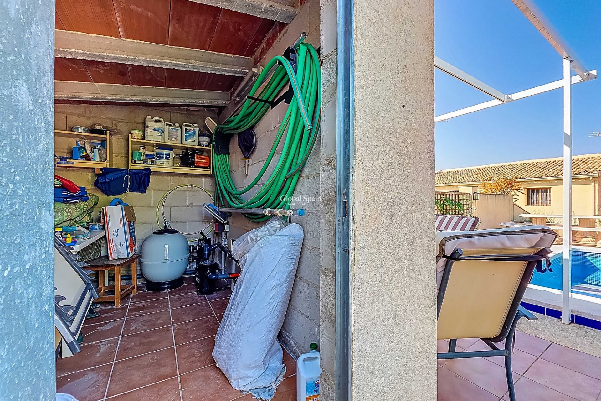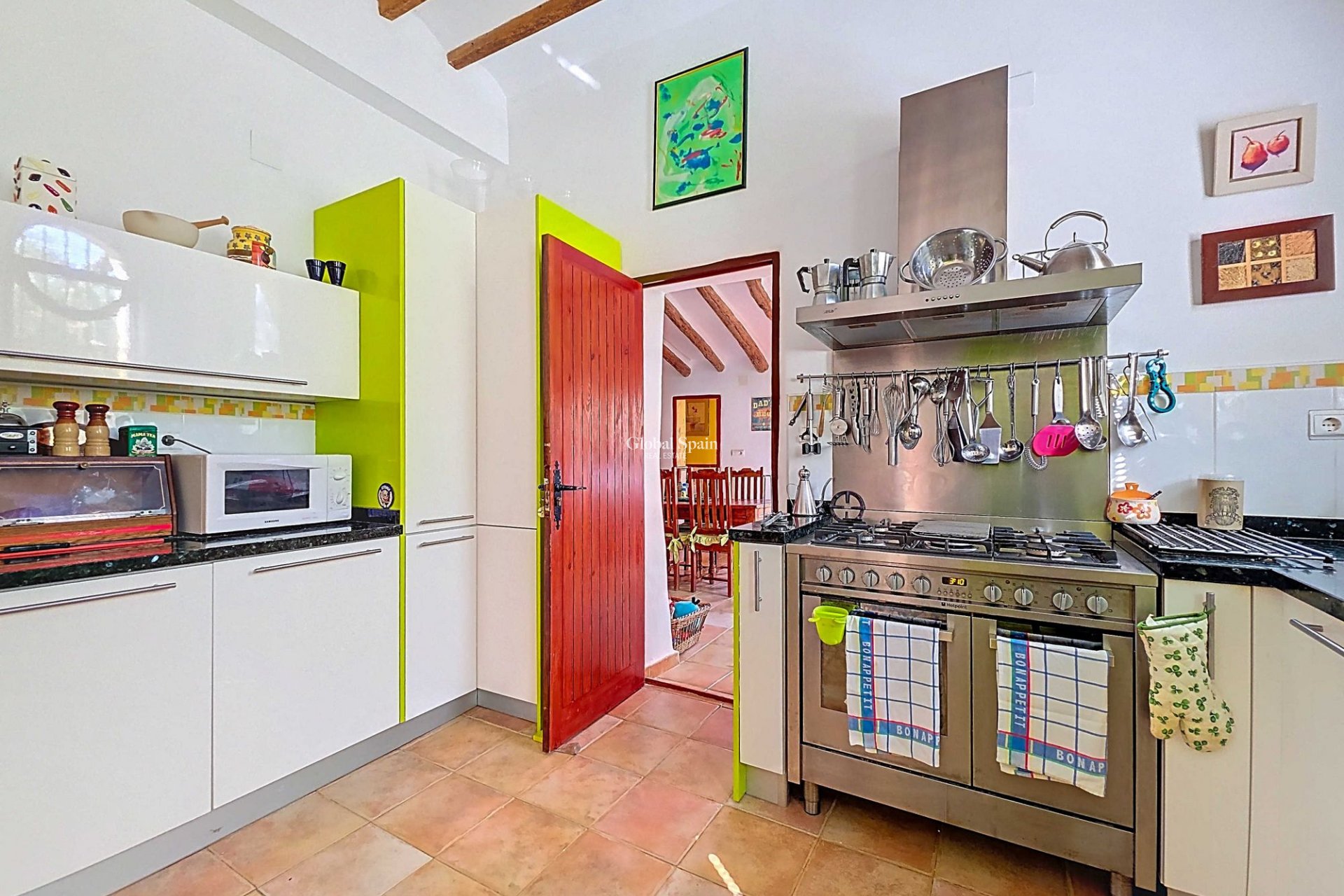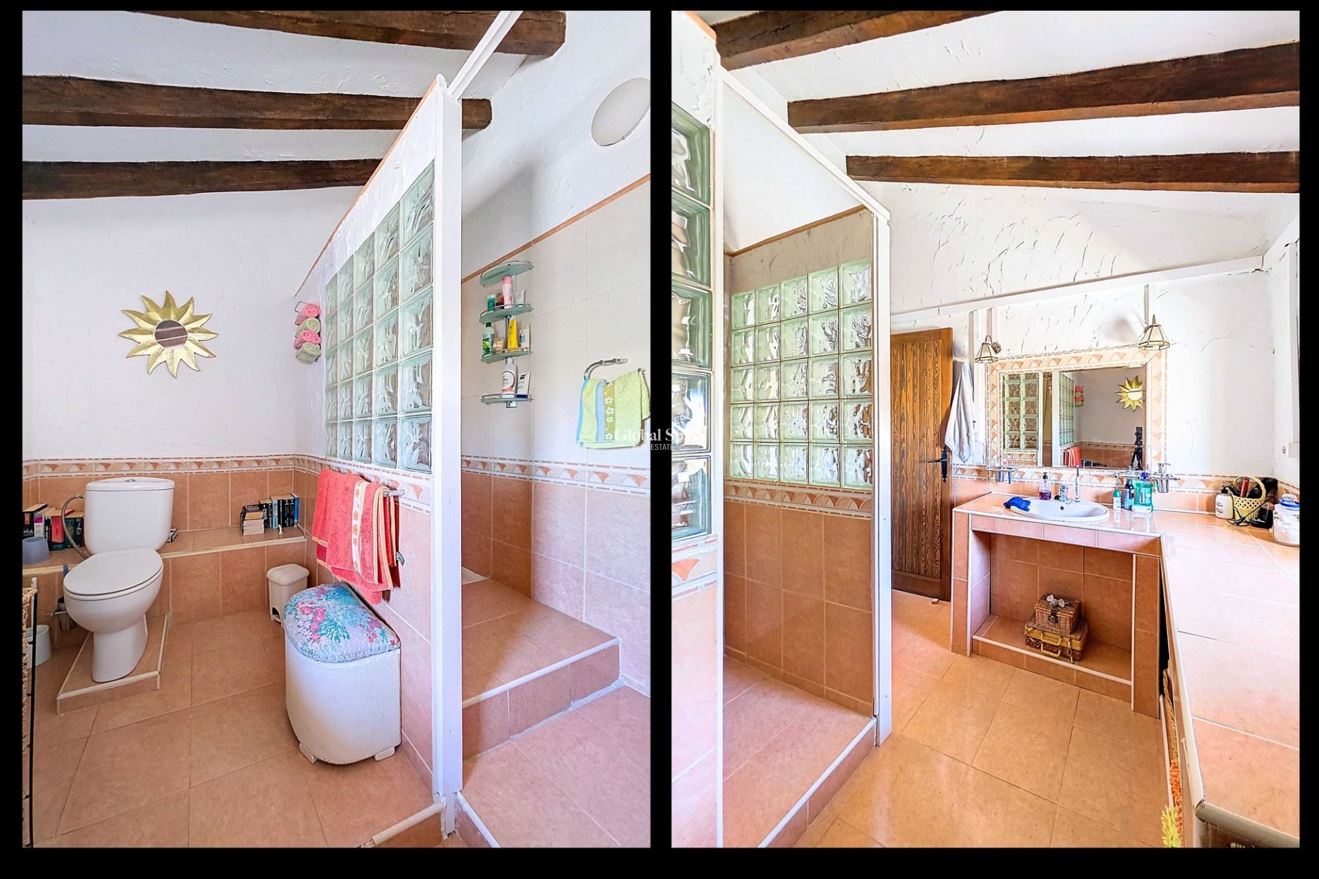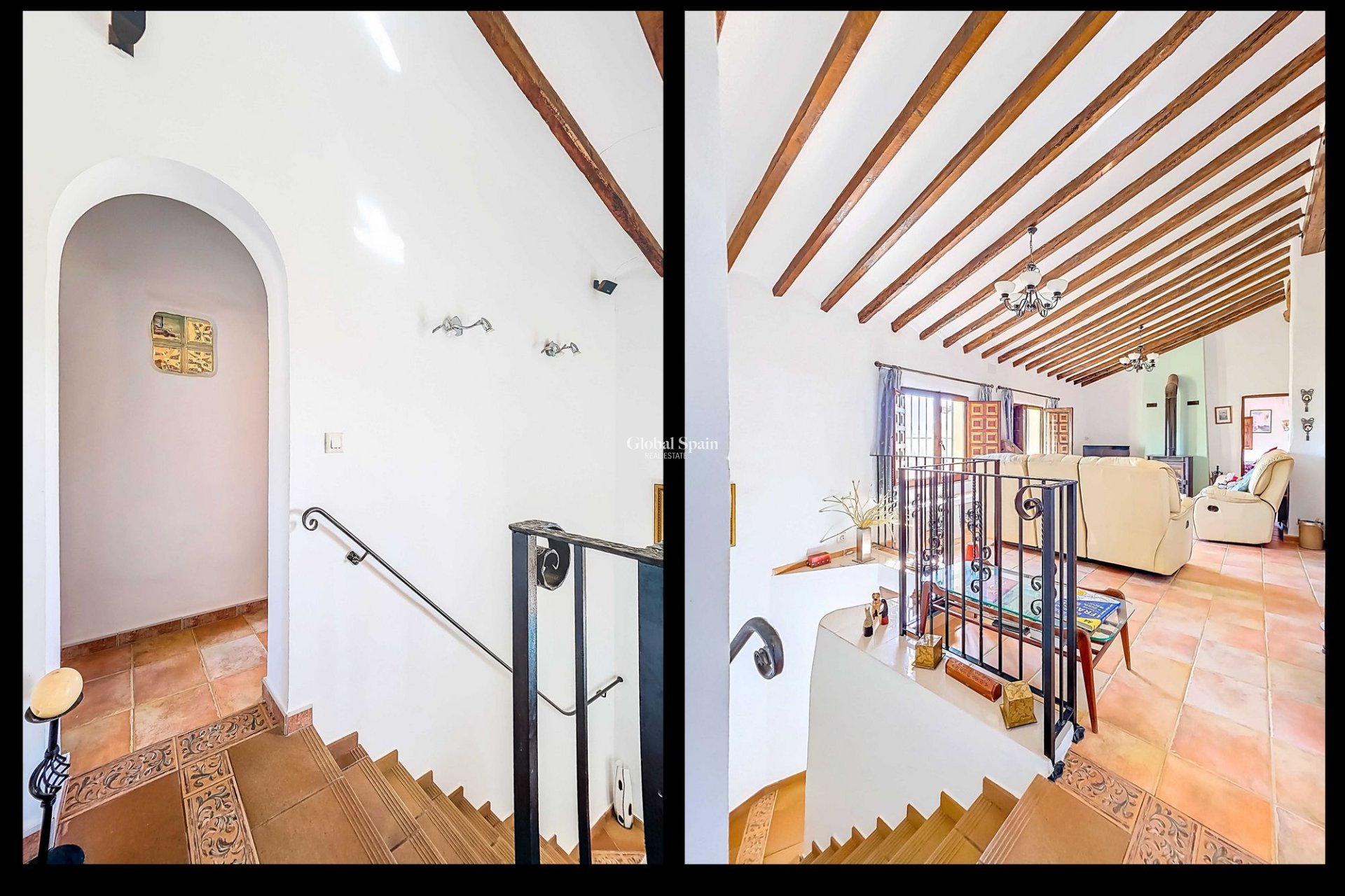 Przestronny dom wiejski z pięknym prywatnym ogrodem, basenem i dwoma garażami Ten uroczy dom wiejski rozciąga się na dwóch piętrach i posiada przytulne patio, które przechodzą w pięknie zagospodarowany ogród z basenem. Posiada również dwa garaże. Nieruchomość jest spokojnie położona w małej wiosce między Pinoso i Jumilla, otoczona wspaniałą przyrodą i panoramicznymi widokami. Nieruchomość jest wystawiona na wyłączność, co oznacza, że wszystkie dokumenty zostały sprawdzone z wyprzedzeniem i wszystko jest w porządku lub może zostać uporządkowane. Dom – parter Na parterze, po obu stronach dużego holu wejściowego, znajdują się dwie sypialnie. Przez podwójne drzwi wchodzi się do przytulnego salonu, który prowadzi do bardzo przestronnego garażu. Garaż ten może być z łatwością wykorzystany jako warsztat lub studio, a po drobnych przeróbkach może również służyć jako idealne biuro domowe. Z salonu można również wyjść na piętro, a pod schodami znajduje się wygodne miejsce do przechowywania. Po drugiej stronie parteru znajduje się przestronna kuchnia, a za nią urocza jadalnia. Z jadalni jest dostęp do pomieszczenia gospodarczego/pralni, osobnej toalety oraz tarasów, które wychodzą na piękny ogród. Dom – parter Na piętrze znajdują się cztery sypialnie, z których jedna posiada garderobę i łazienkę. Ta przestronna sypialnia główna ma również dostęp do tarasu. Na piętrze znajduje się również duża łazienka, schowek, a nawet drugi przestronny salon. Działka Oprócz garażu znajdującego się obok salonu, znajduje się drugi, oddzielny garaż. Ogród z tarasami jest pięknie zagospodarowany starymi drzewami i oferuje wiele możliwości korzystania zarówno ze słońca, jak i cienia. Ogród i basen są całkowicie prywatne. Obok basenu znajduje się domek przy basenie z miejscem do przechowywania. Wyposażenie Obecni właściciele przez lata odnawiali nieruchomość, zachowując jej rustykalny urok i atmosferę, wyposażając ją we wszystkie nowoczesne udogodnienia. W domu znajdują się trzy piece opalane drewnem (w obu salonach i jadalni), a okna wyposażone są w atrakcyjne drewniane okiennice i moskitiery. Dom jest podłączony do prądu i wody. Lokalizacja: Nieruchomość znajduje się w małej i spokojnej wiosce w Torre del Rico, pomiędzy Pinoso i Jumilla. To piękna wiejska okolica, w której wciąż żywe jest tradycyjne hiszpańskie życie. Zarówno Pinoso, jak i Jumilla oferują wszystkie udogodnienia, takie jak supermarkety, szkoły, ośrodek zdrowia, obiekty sportowe i szeroki wybór restauracji. W okolicy znajdują się liczne szlaki piesze i rowerowe, a okolica obfituje w migdałowe, oliwne i winnice – a wszystko to w cudownym śródziemnomorskim klimacie. Do lotnisk w Alicante i Murcji, a także na plaże, można dojechać w ciągu godziny. Skontaktuj się z nami już dziś, aby umówić się na oglądanie!