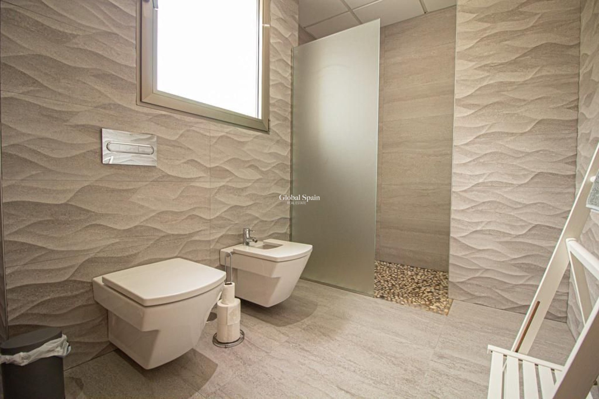 Luksusowa willa położona 900 metrów od plaży. Powierzchnia działki wynosi około 1250 metrów kwadratowych, z czego 355 metrów kwadratowych przypada na powierzchnię zabudowaną. Układ domu jest następujący: Na parterze znajduje się sypialnia główna z przestronną garderobą i łazienką z wanną z hydromasażem. Następnie znajduje się przestronny salon z dużymi oknami o wysokości 3 metrów, które zapewniają maksymalne doświetlenie światłem naturalnym. Salon połączony jest z designerską kuchnią z piękną granitową wyspą pośrodku, zapewniającą komfort gotowania. Kuchnia ma również dostęp do basenu o długości 61 metrów z jacuzzi i wodospadami. Obok kuchni znajduje się pralnia połączona rurą z piętrem, co ułatwia transport prania. Na tym piętrze znajduje się również łazienka dla gości oraz pokój, który można wykorzystać jako biuro. Na piętrze znajdują się cztery sypialnie, każda z własną łazienką i oddzielnym tarasem. Z tarasu roztacza się panoramiczny widok na miasto, morze i góry. Jeśli chodzi o jakość wykończenia, podłoga wykonana jest z wysokiej jakości gresu porcelanowego i posiada ogrzewanie podłogowe. Okna z potrójnymi szybami zapewniają izolację termiczną i akustyczną. Dodatkowo, nieruchomość wyposażona jest w centralną klimatyzację z funkcją chłodzenia i ogrzewania oraz istnieje możliwość montażu windy, zgodnie z planem piętra. Na koniec, do dyspozycji jest okazały garaż o powierzchni około 350 metrów kwadratowych i wysokości 5 metrów na 12 samochodów, z konstrukcją antysejsmiczną.