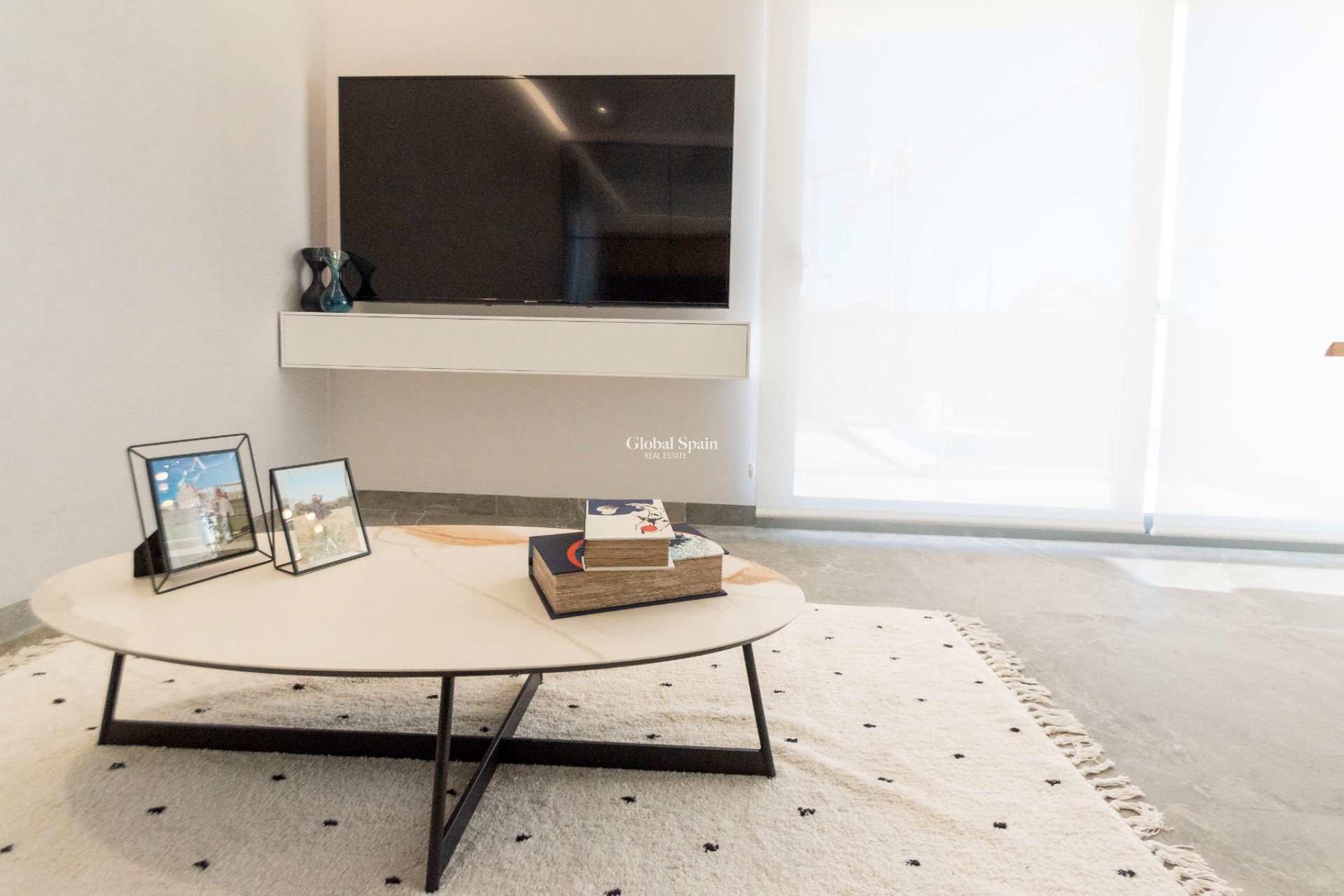 These modern villas, located in Lo Romero Golf, will be delivered with a beautifully furnished kitchen with the following kitchen appliances included: vitro ceramic hob, extractor hood, washing machine, dishwasher, oven, microwave and refrigerator. The bedrooms will have built-in wardrobes with LED lighting and the spacious bathrooms will also be beautifully furnished (shower screens included in the price). An aerothermal system will be provided for the production of hot water so that you can generate energy-efficient hot water. Furthermore, these villas will be equipped with electric shutters and there will already be a pre-installation for conduction air conditioning for the living room and bedrooms. In addition, the spacious solarium, with a beautiful view over the golf resort, will be equipped with an outdoor kitchen and outdoor shower (hot - cold).