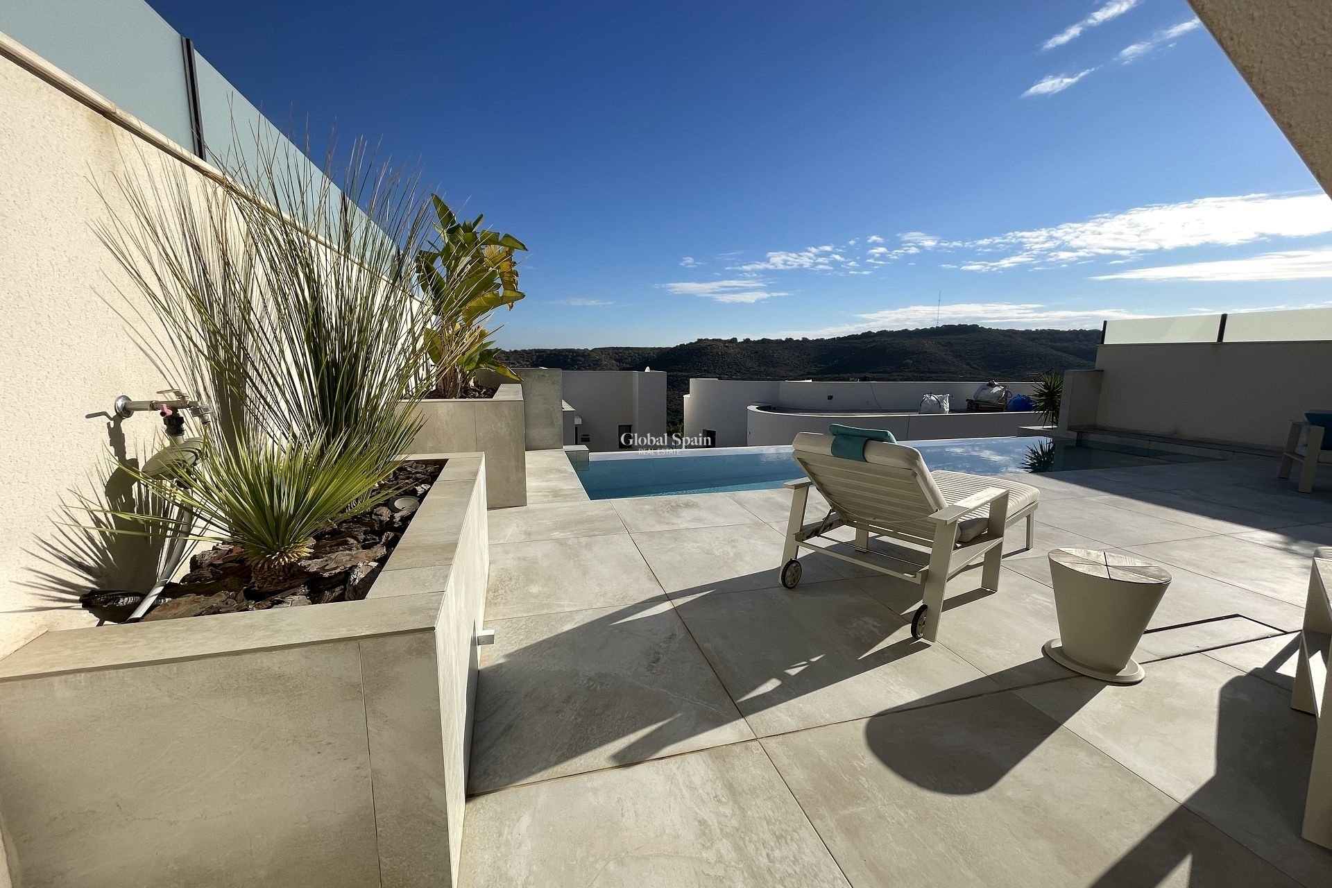 You enter the spacious living area with beautiful, open-plan kitchen that flows seamlessly into the large terrace with large infinity pool, where you can enjoy the incredible views. In addition, you also have a two spacious bedrooms, both with ensuite bathrooms. The external staircase leads to the solarium, where you can enjoy the magic of the Costa Blanca!